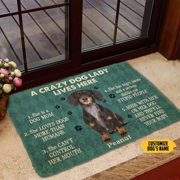 Gearhumans 3D A Crazy Dog Lady Lives Here Black Dachshund Custom Name Doormat