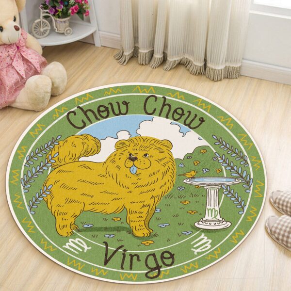 Gearhumans 3D Chow Chow Dog Virgo Zodiac Sign Custom Round Rug