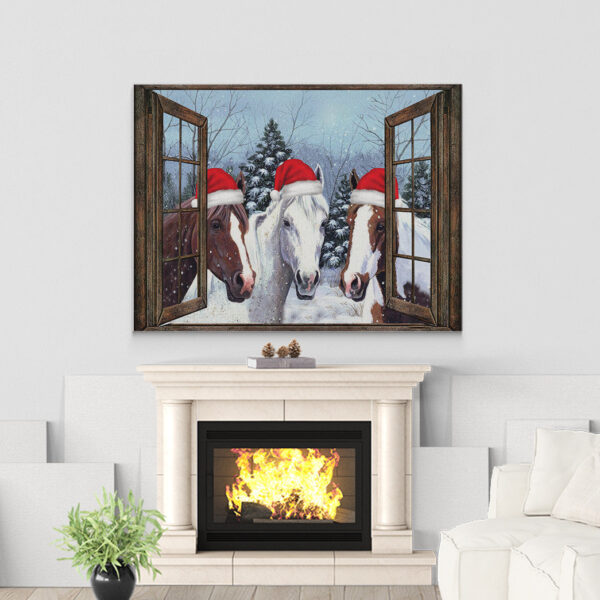 Gearhumans 3D Christmas Farmhouse Horse In Christmas Custom Canvas