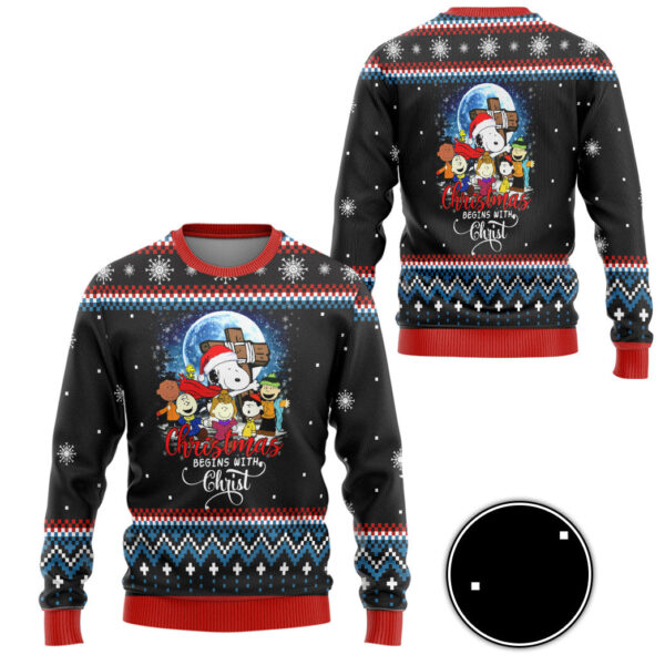 Gearhumans 3D Christmas Begins With Christ Custom Ugly Long sleeve