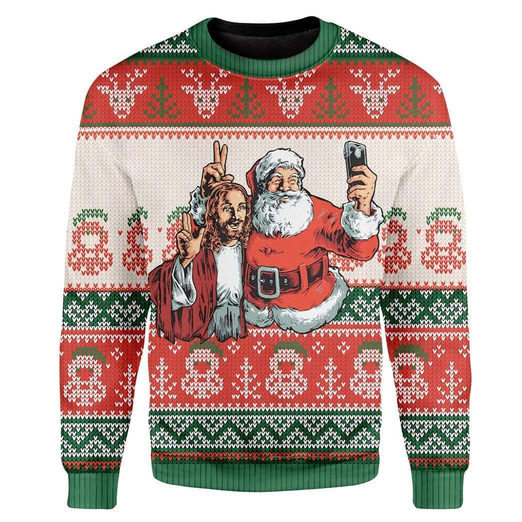 Gearhumans Custom Ugly Santa And Jesus Christmas Sweater Jumper
