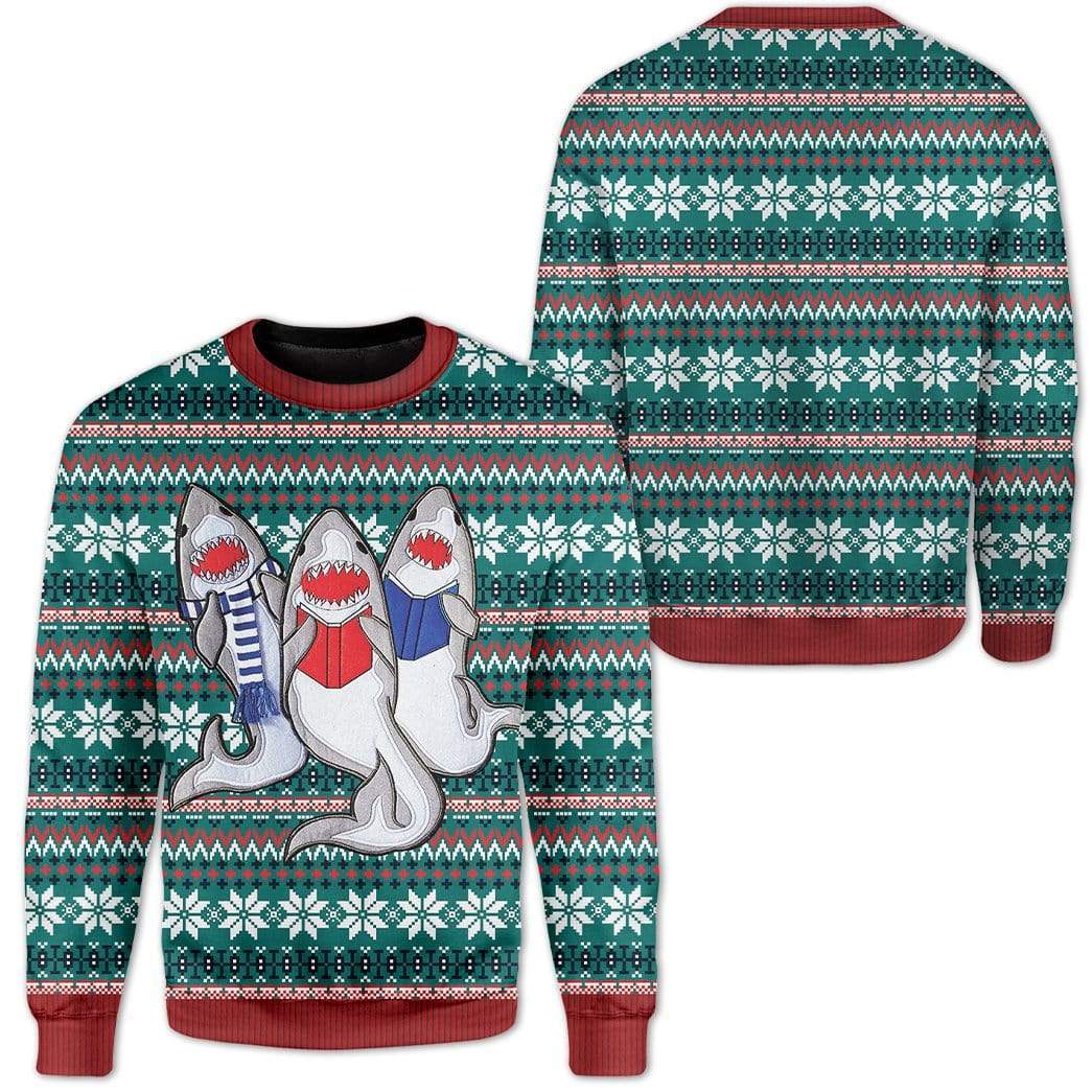 Gearhumans Custom Ugly Shark Christmas Sweater Jumper