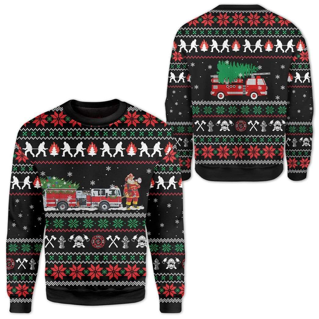 Gearhumans Custom Ugly Christmas Firefighter Sweater Jumper