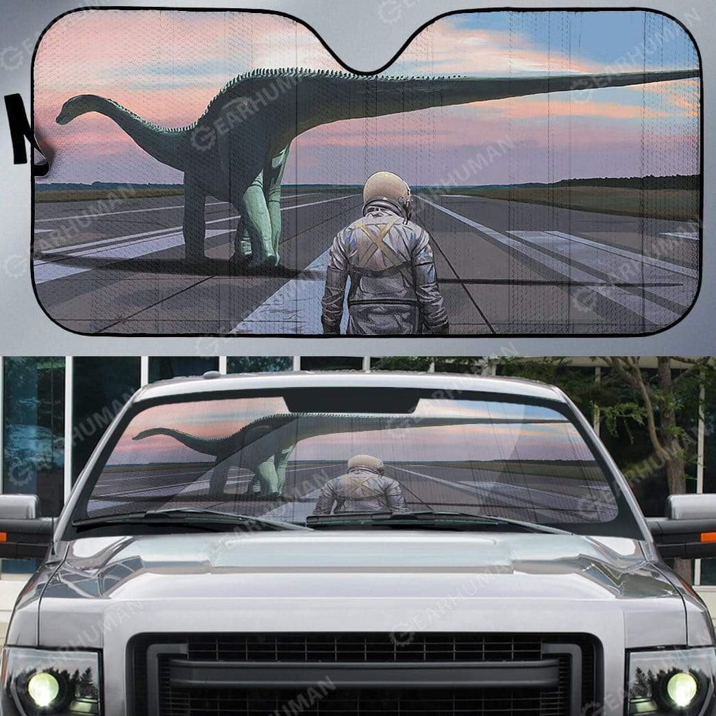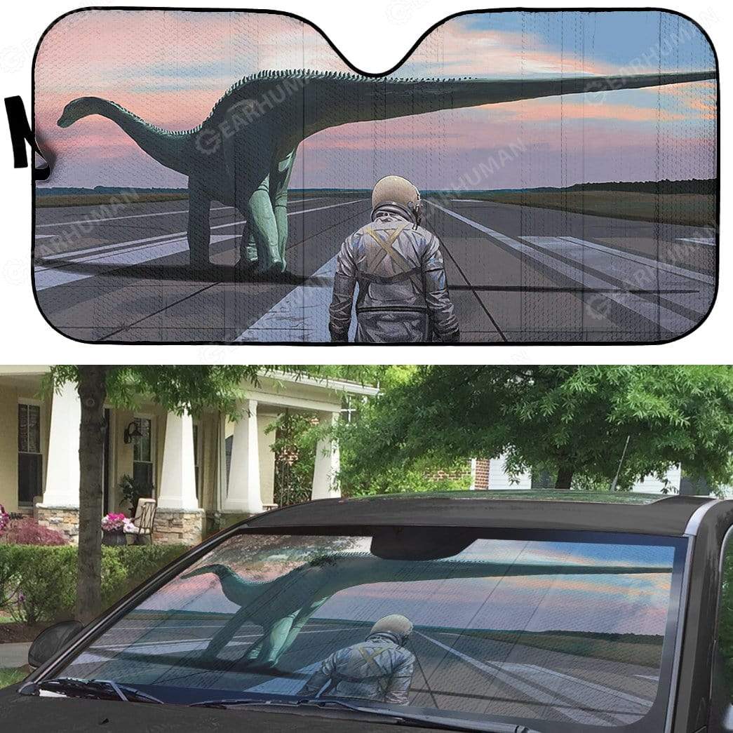 Gearhumans Custom Car Auto Sunshade Dinosaur And Astronaut