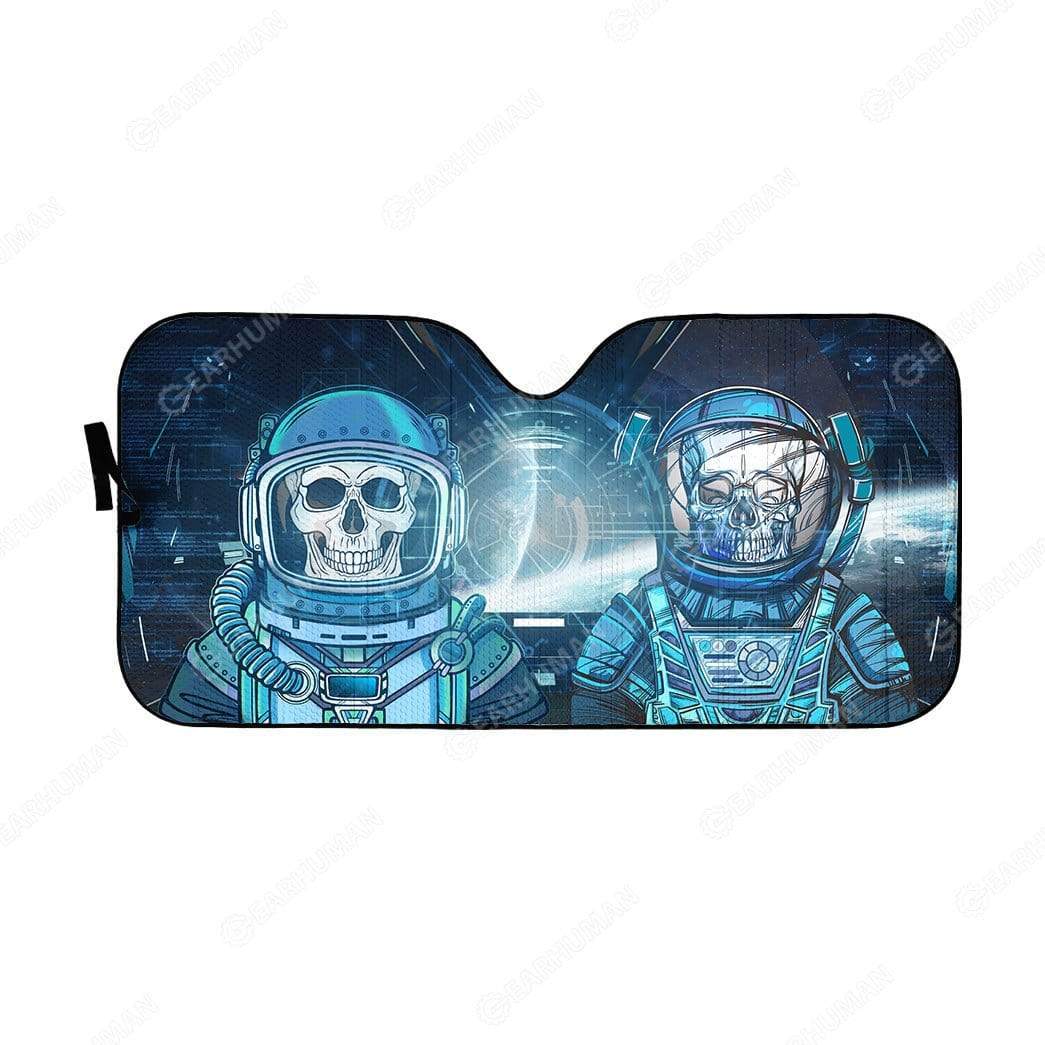 Gearhumans Custom Car Auto Sunshade Skull Astronaut In Spaceship