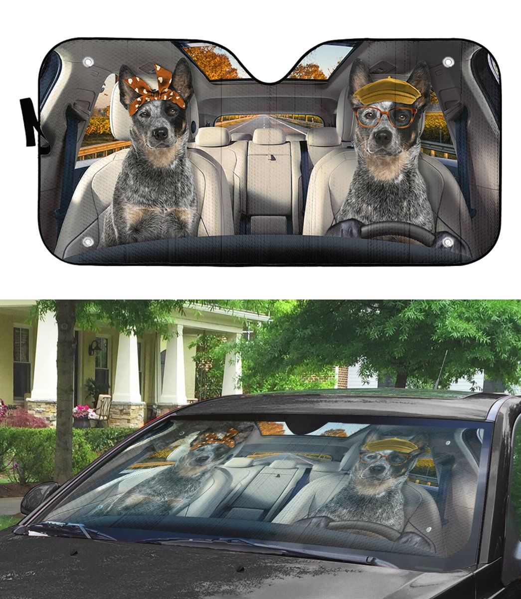 Gearhumans 3D Australian Cattle Couple Dog Auto Car Sunshade