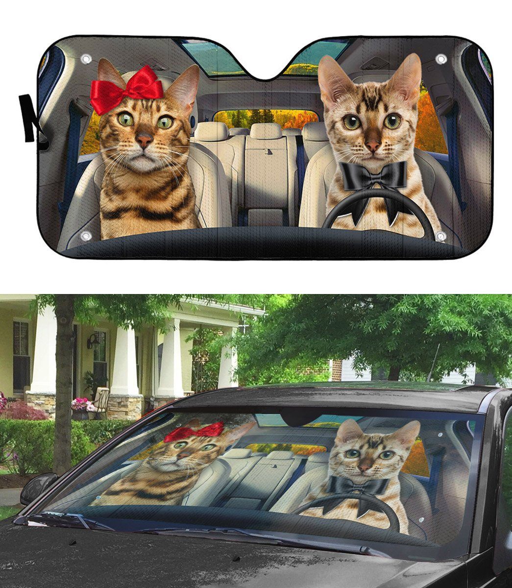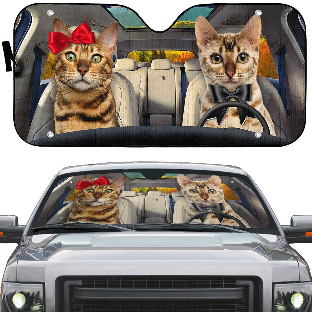 Gearhumans 3D Bengal Cat Couple Auto Car Sunshade