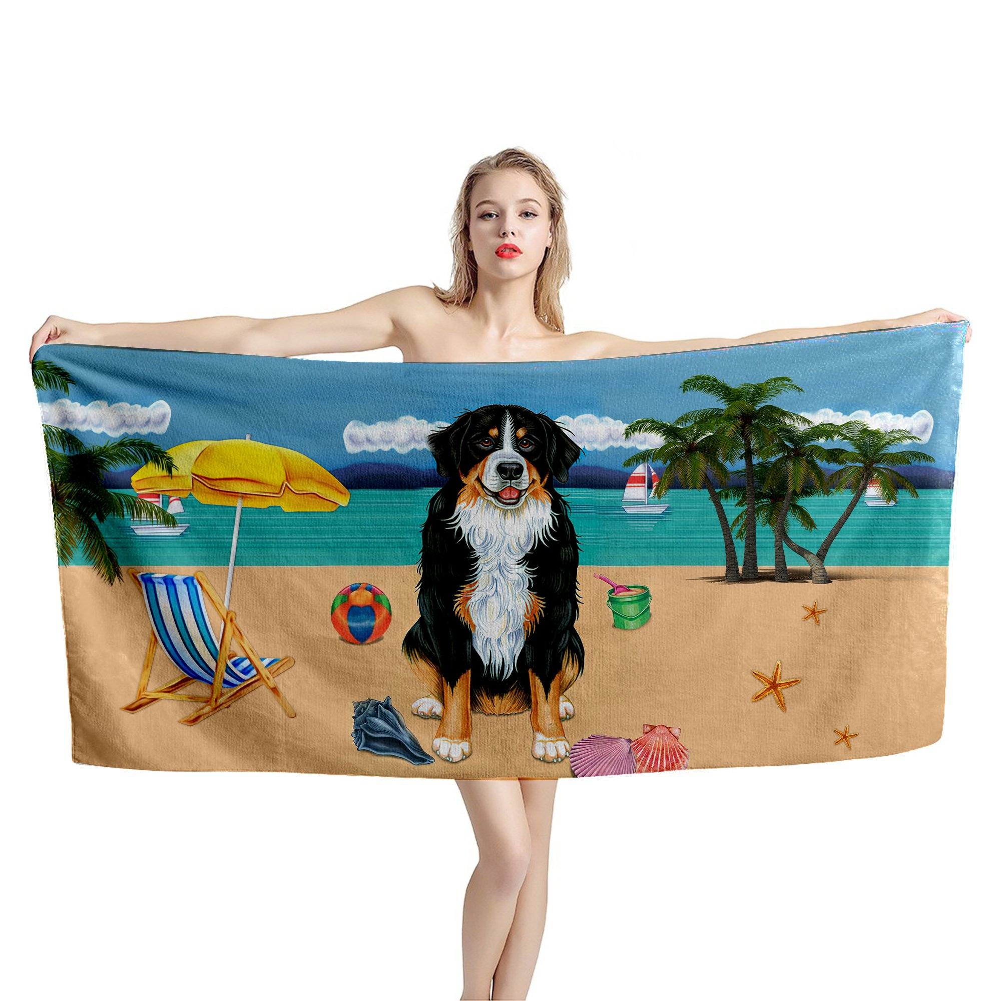 Gearhumans 3D Bernese Mountain Dog Custom Beach Towel