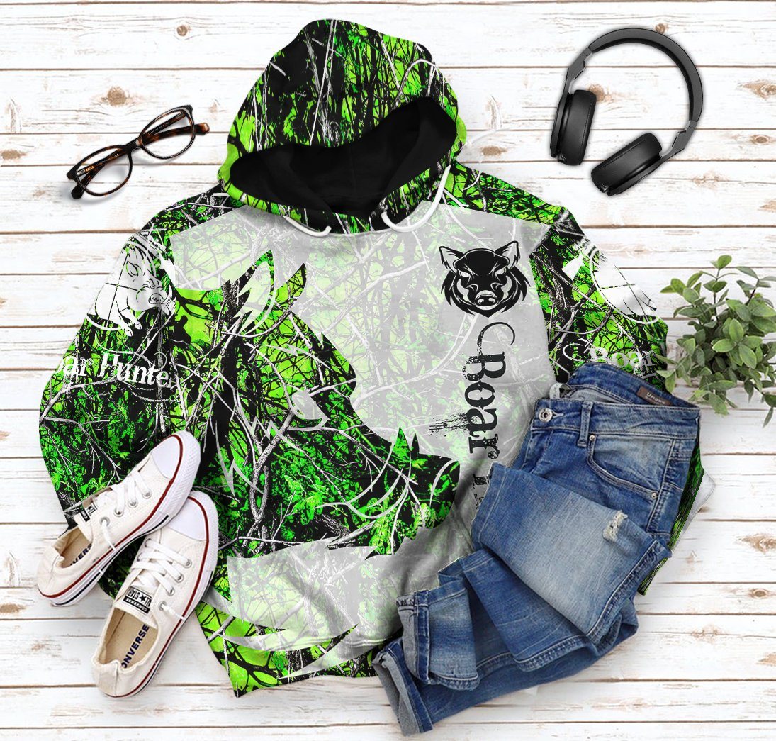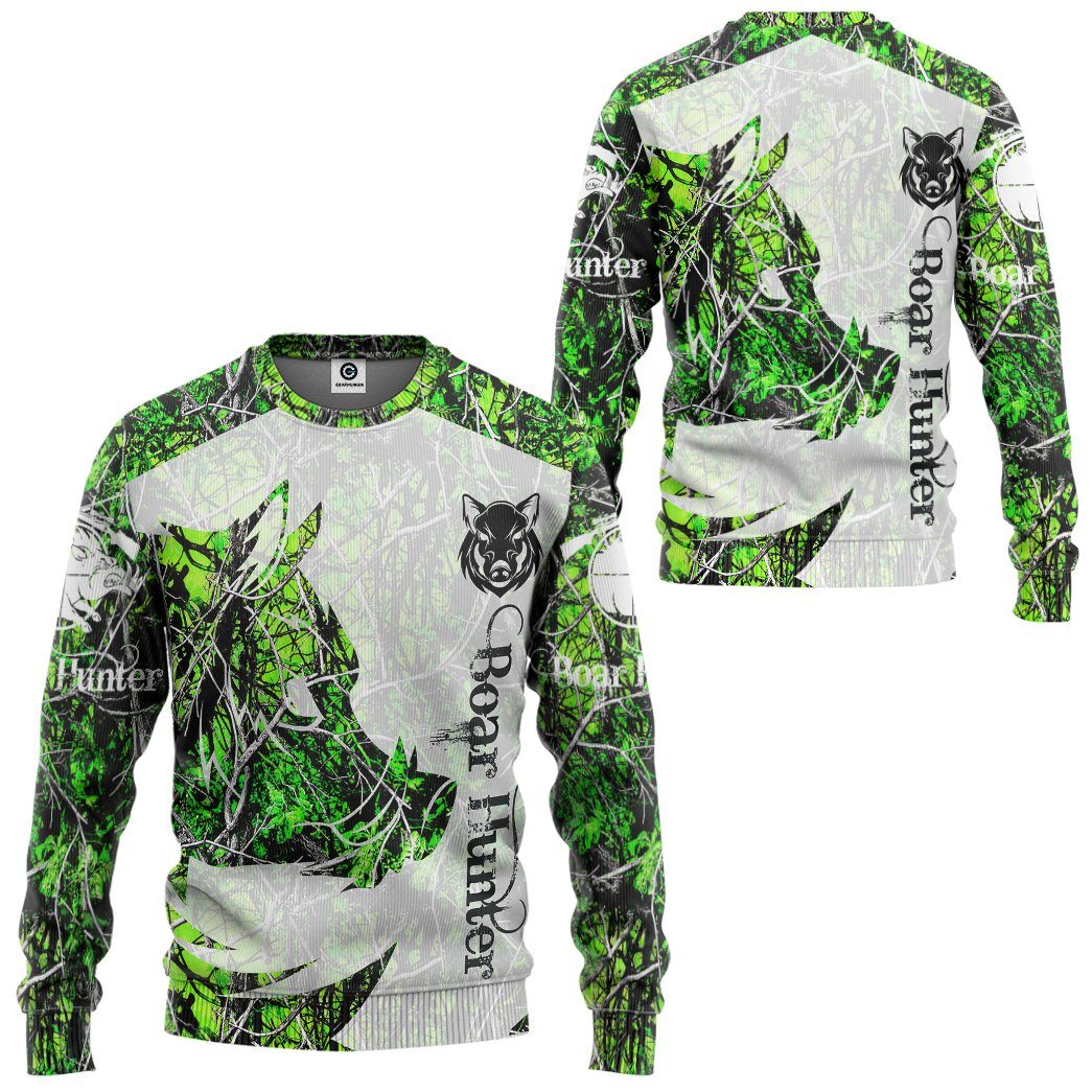 Gearhumans 3D Boar Hunter Green Custom Tshirt Hoodie Apparel