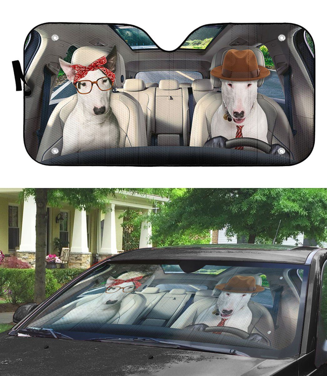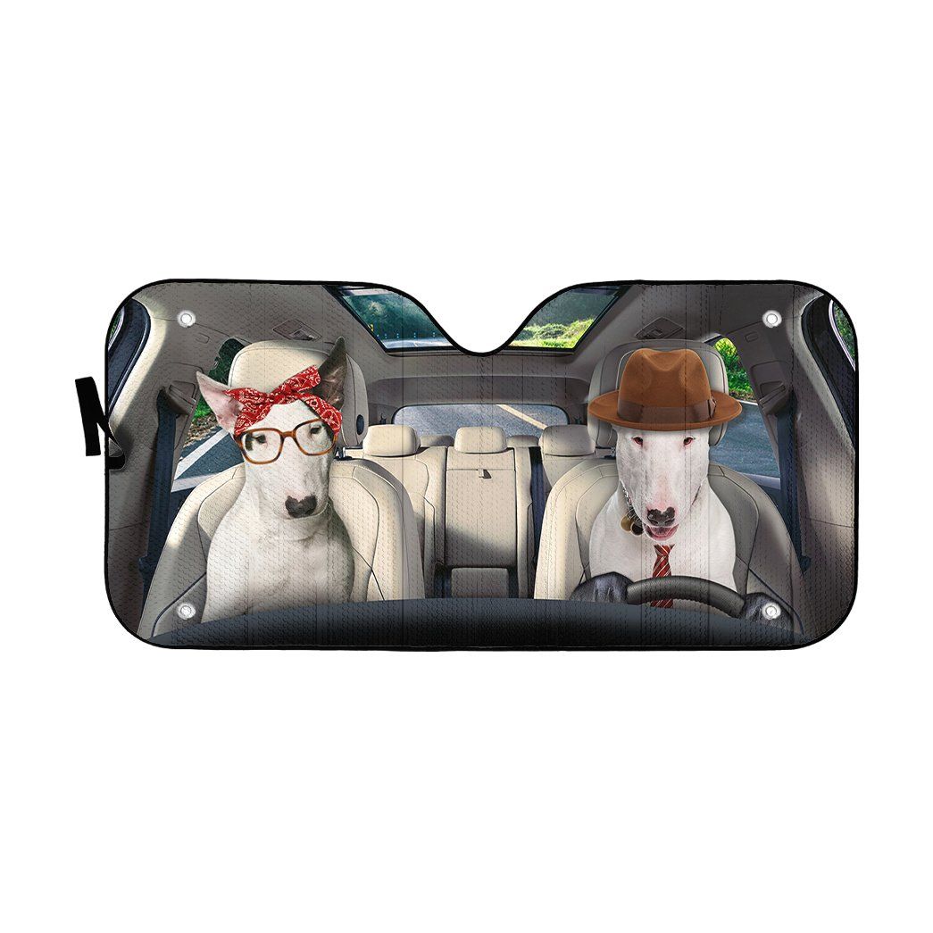 Gearhumans 3D Bull Terrier Couple Dog Auto Car Sunshade