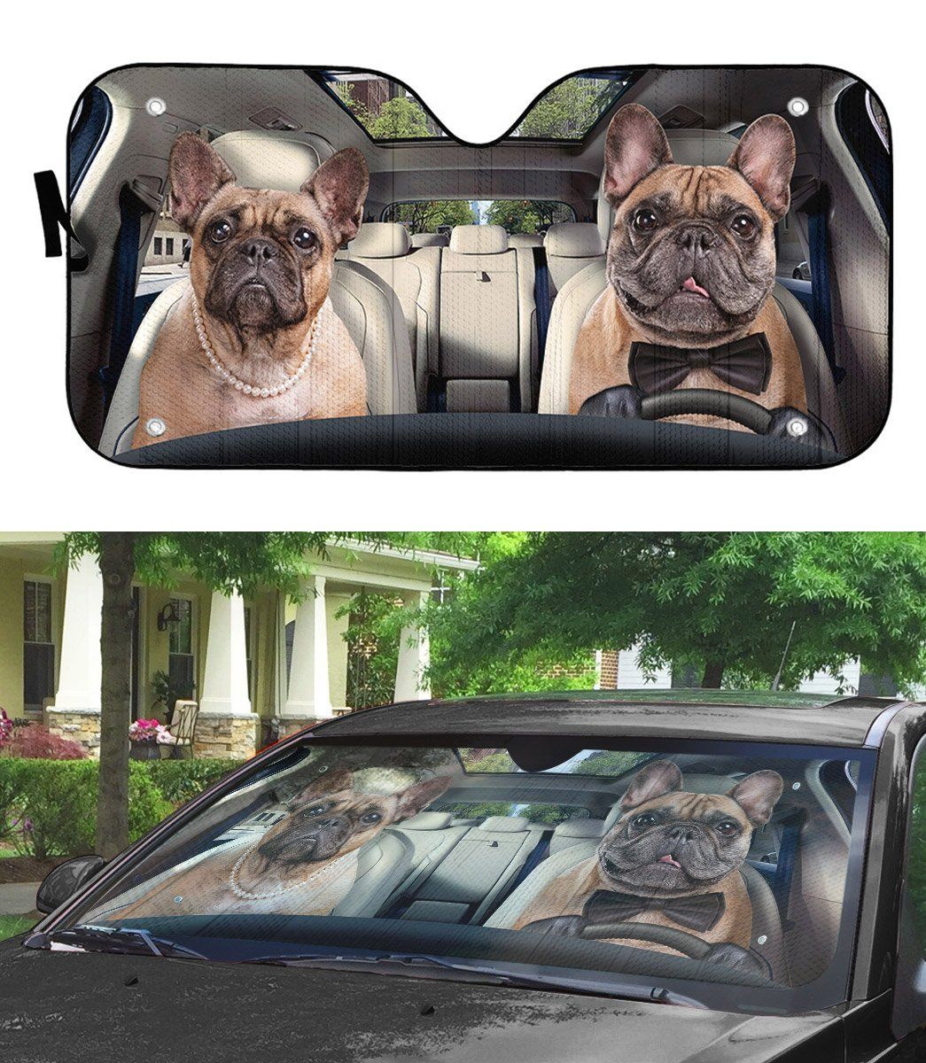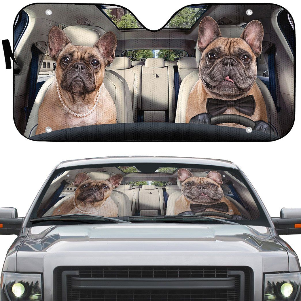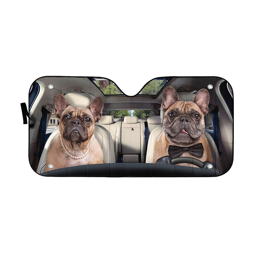Gearhumans 3D Bulldog Couple Custom Car Auto Sunshade