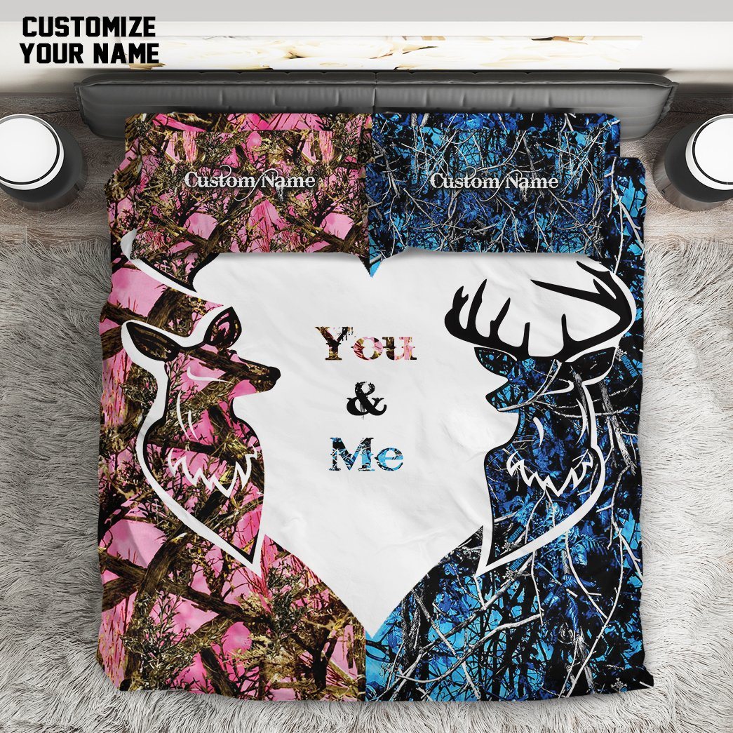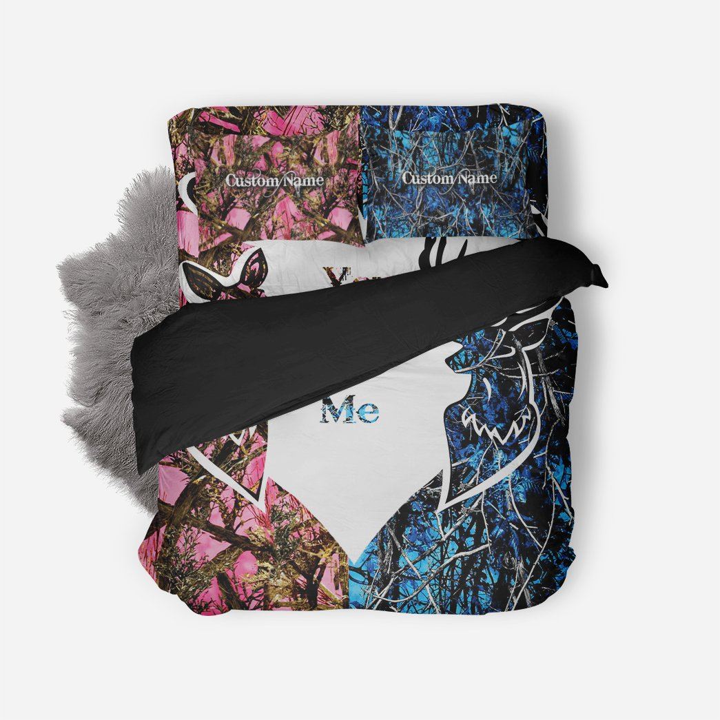 Gearhumans 3D Couple Hunting Custom Name Bedding Set