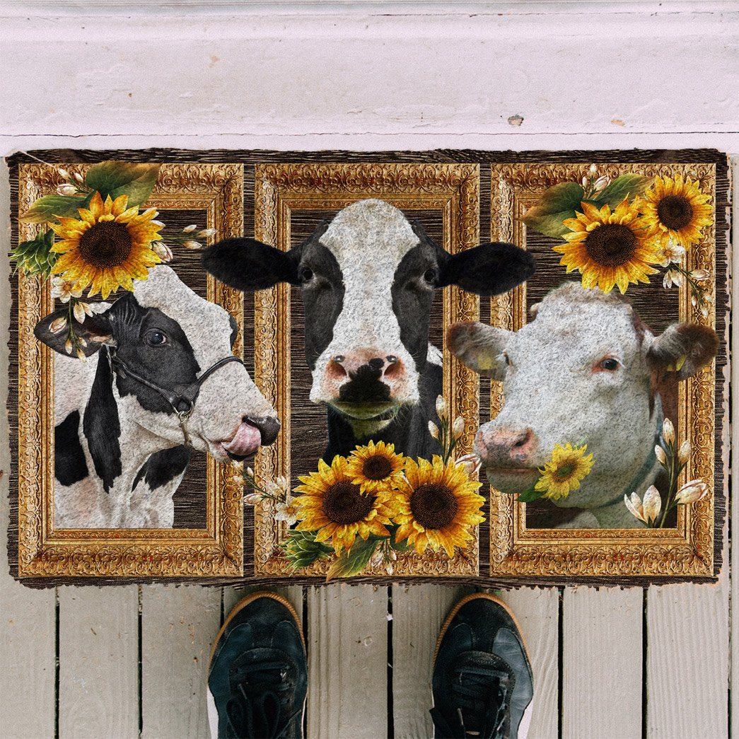 Gearhumans 3D Cow Sunflower Custom Doormat