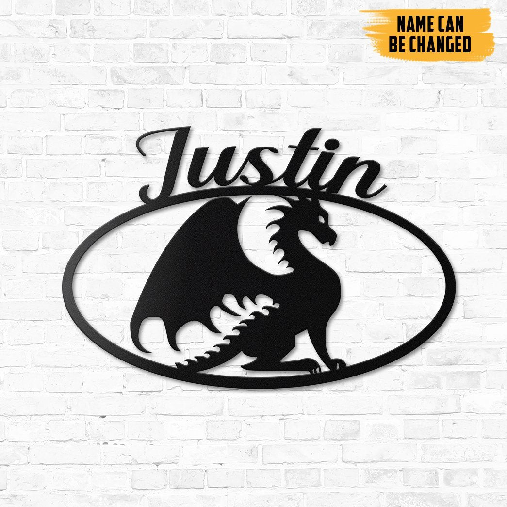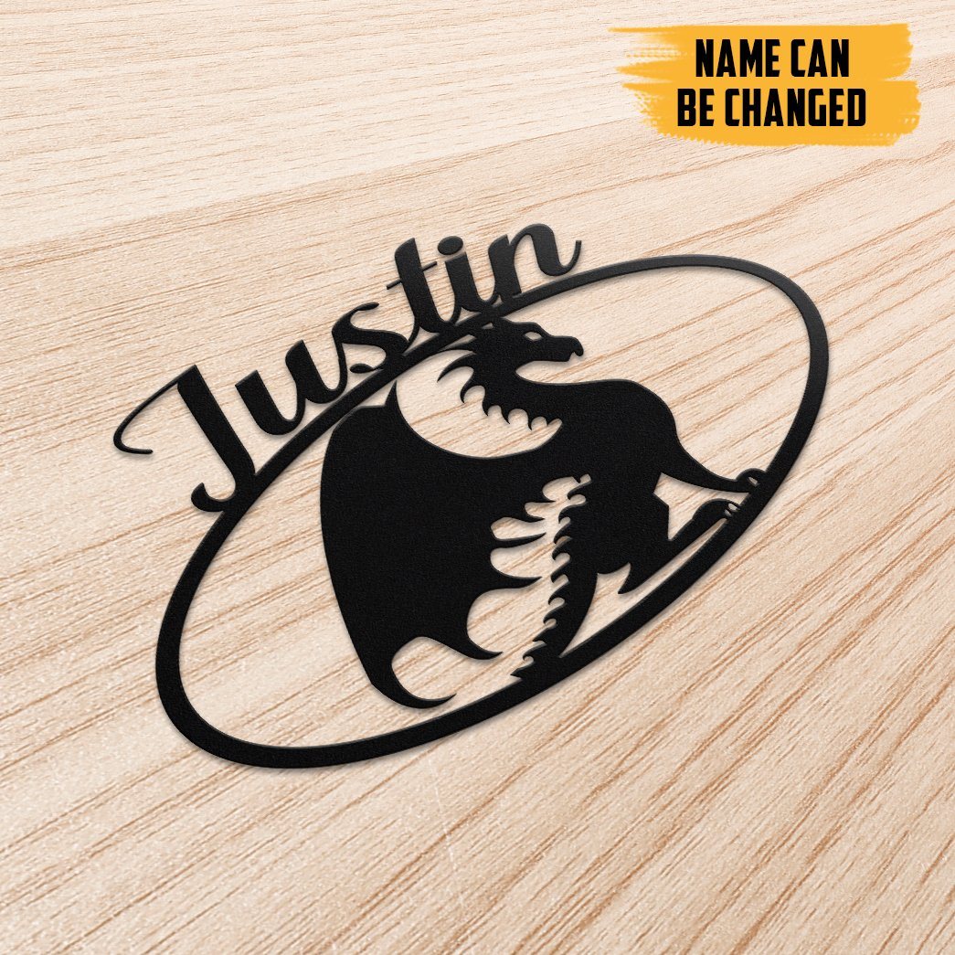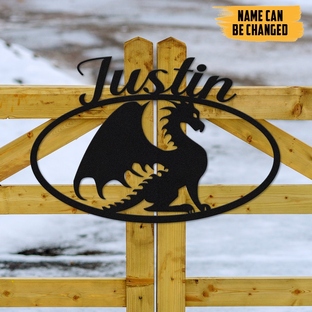 Gearhumans 3D Dragon Sign Custom Name Metal Sign
