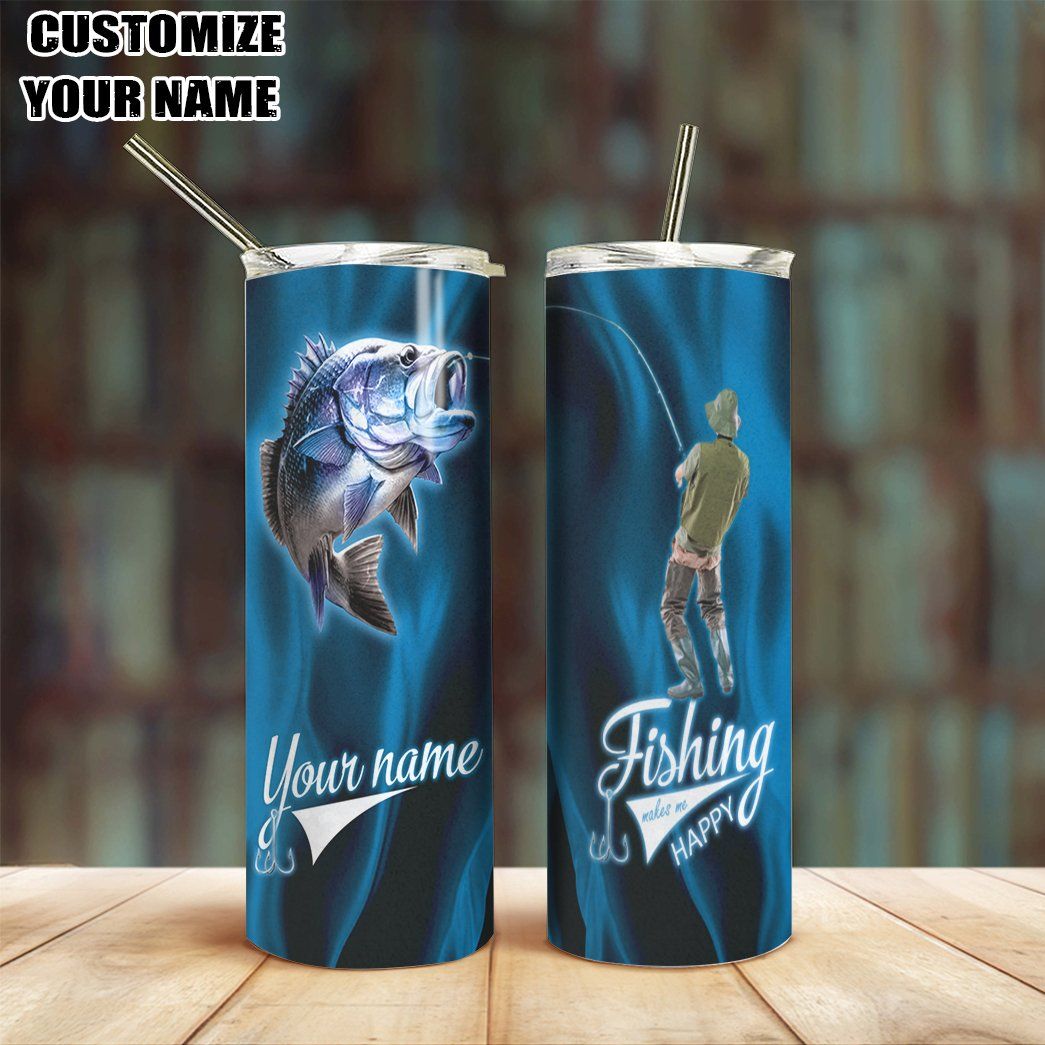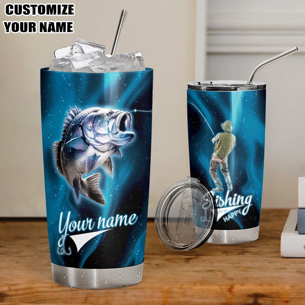 Gearhumans 3D Fishing Custom Name Design Vacuum Insulated Tumbler