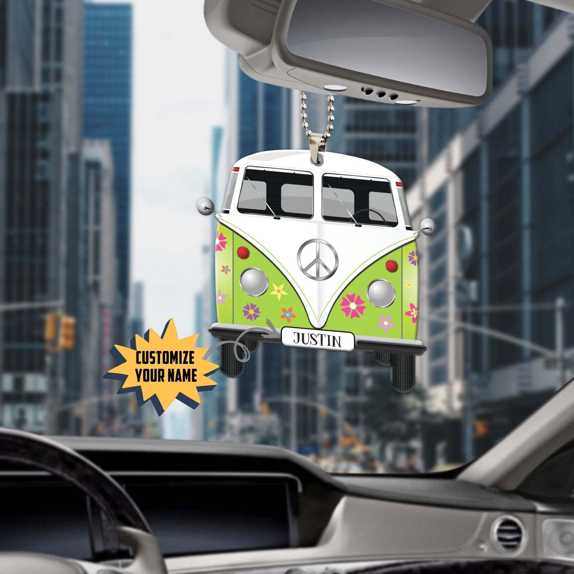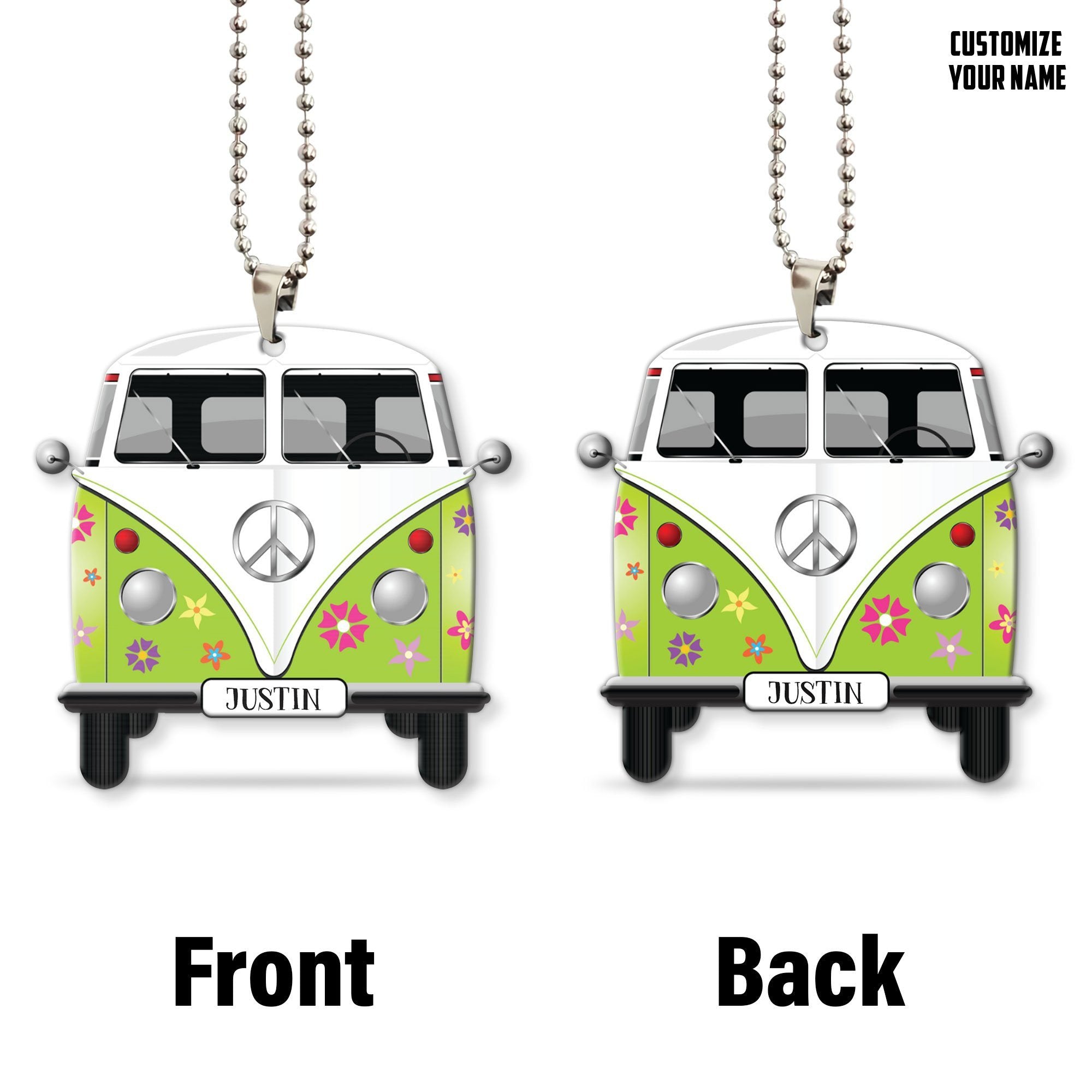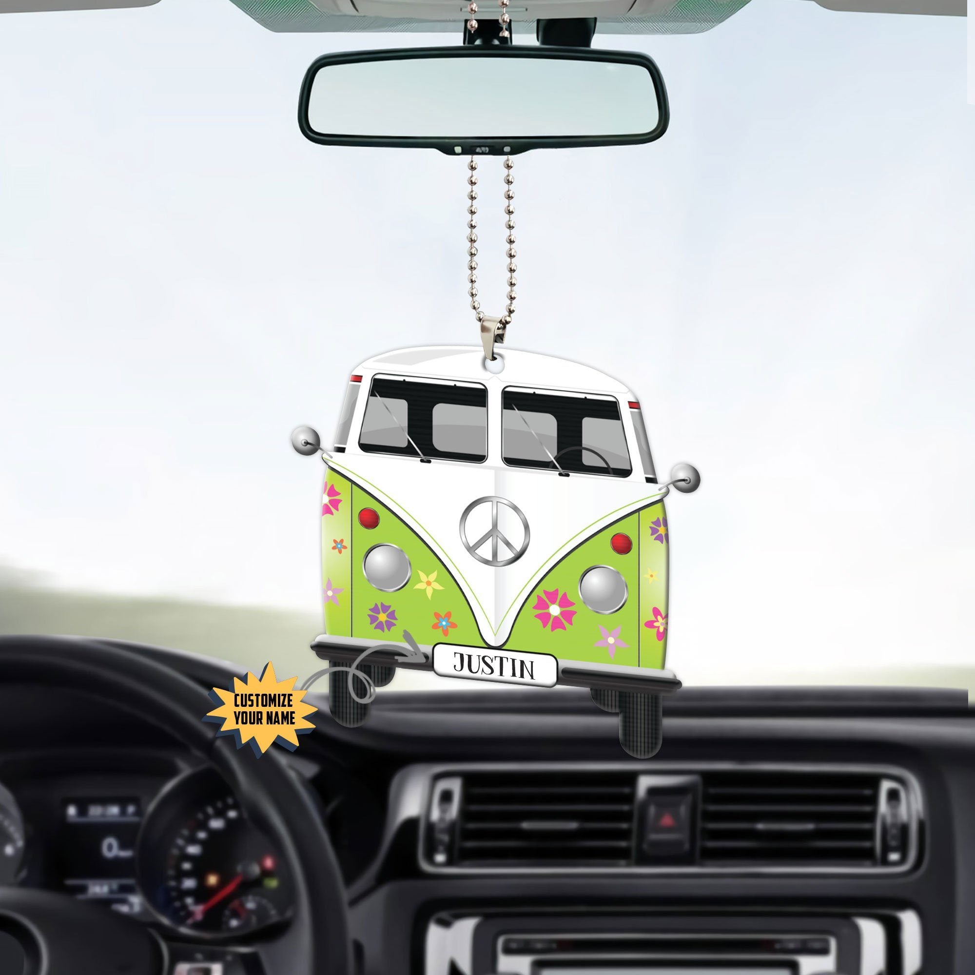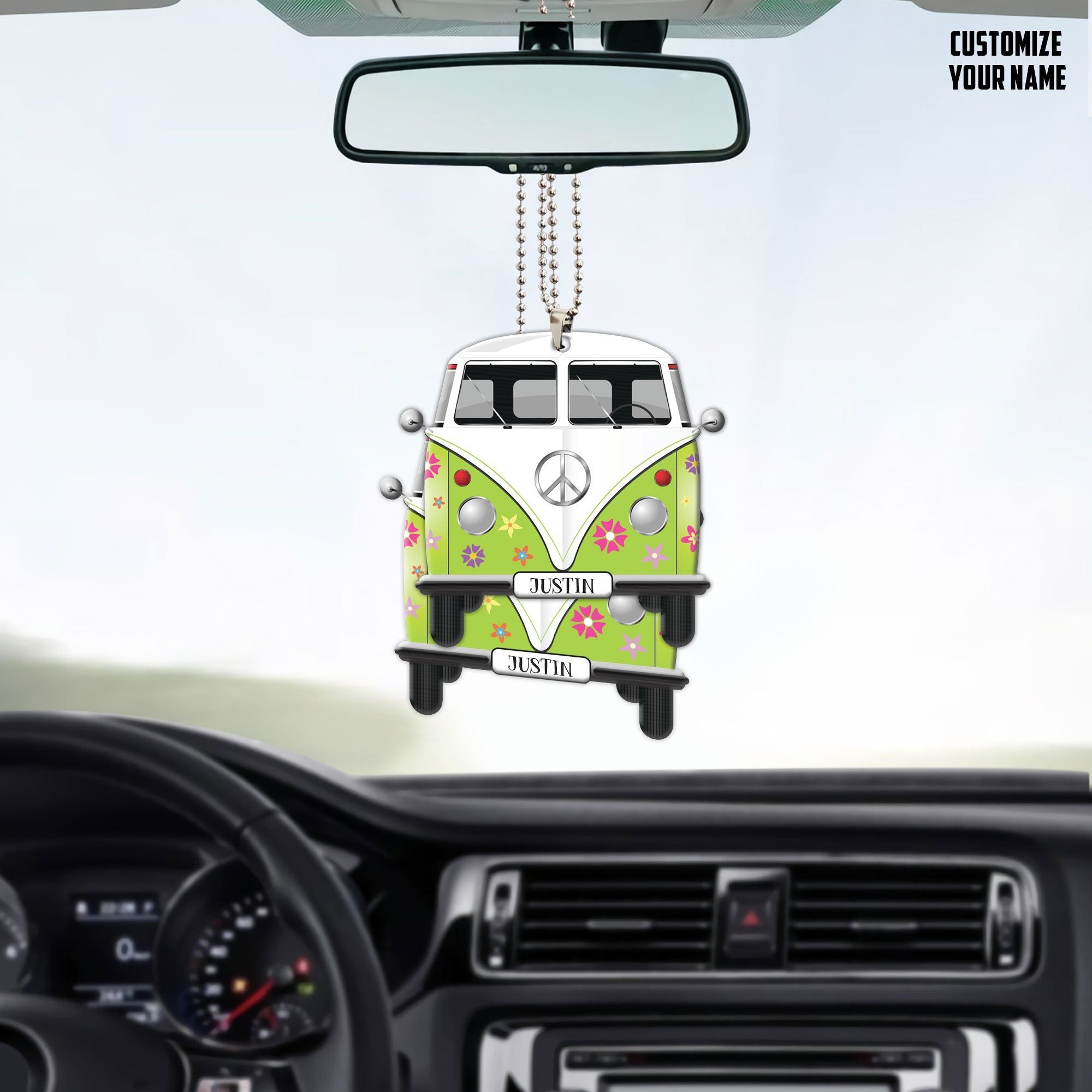 Gearhuman 3D Flowered Hippie Van Custom Name Car Hanging