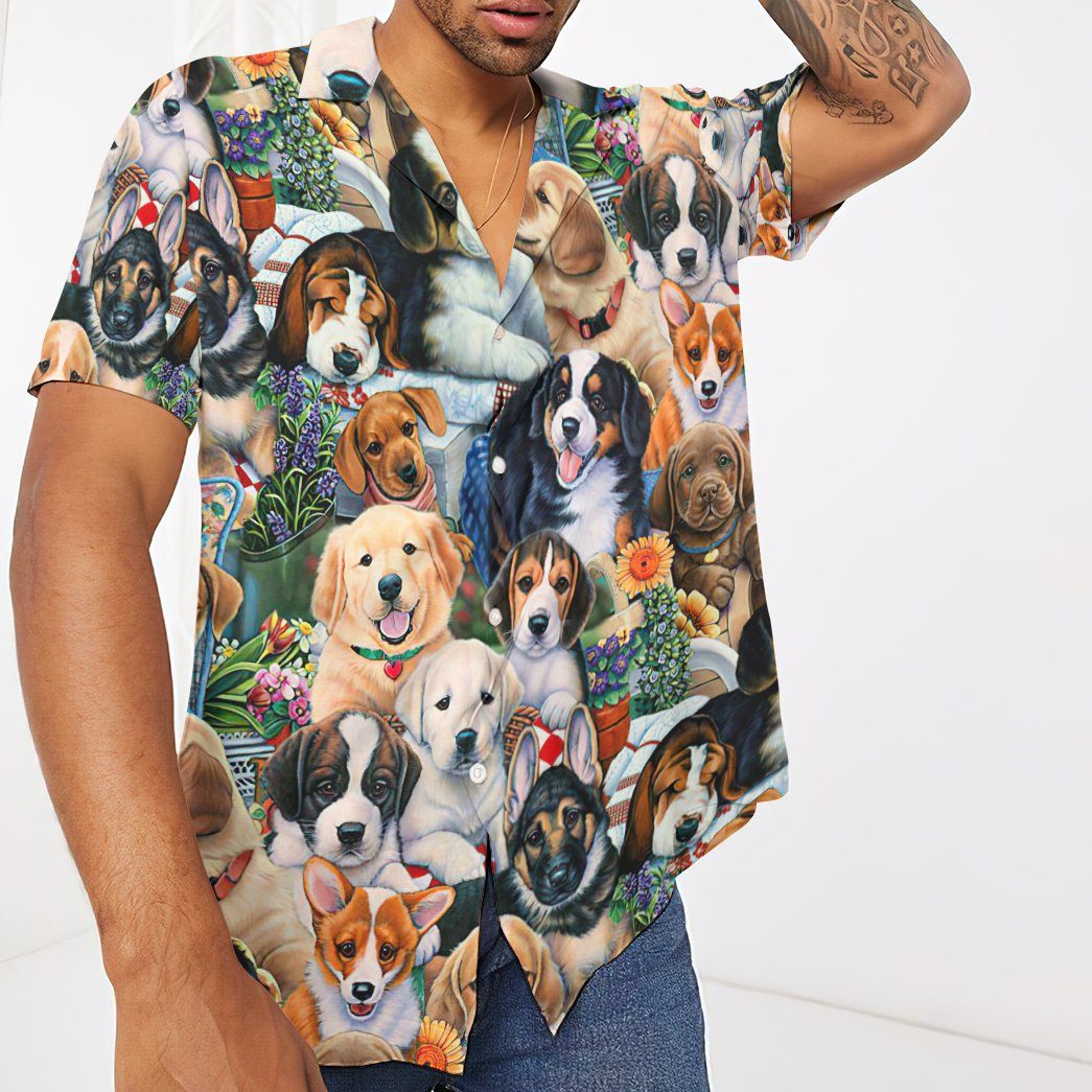 Gearhumans 3D Garden Puppies Custom Short Sleeve Shirt