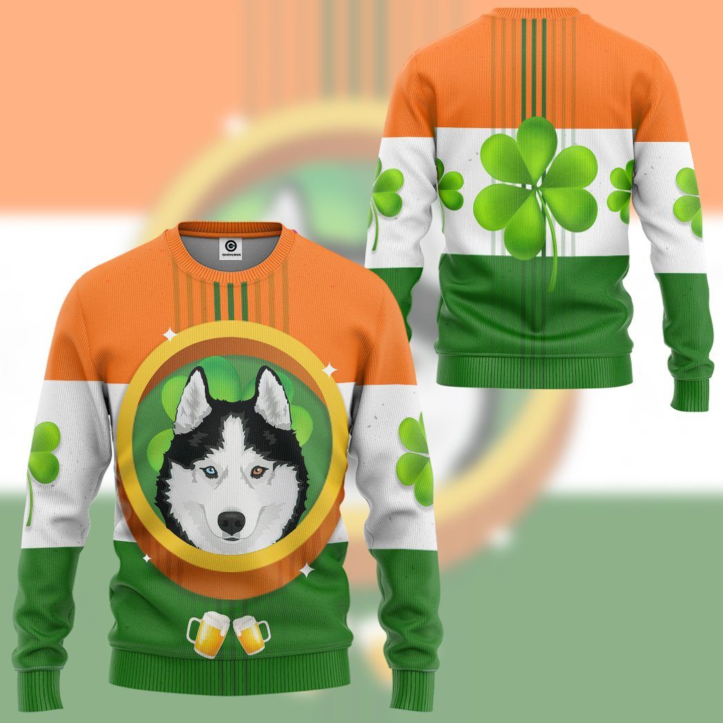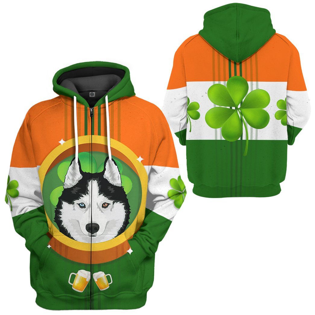Gearhumans 3D St Patrick Day Husky Tshirt Hoodie Apparel