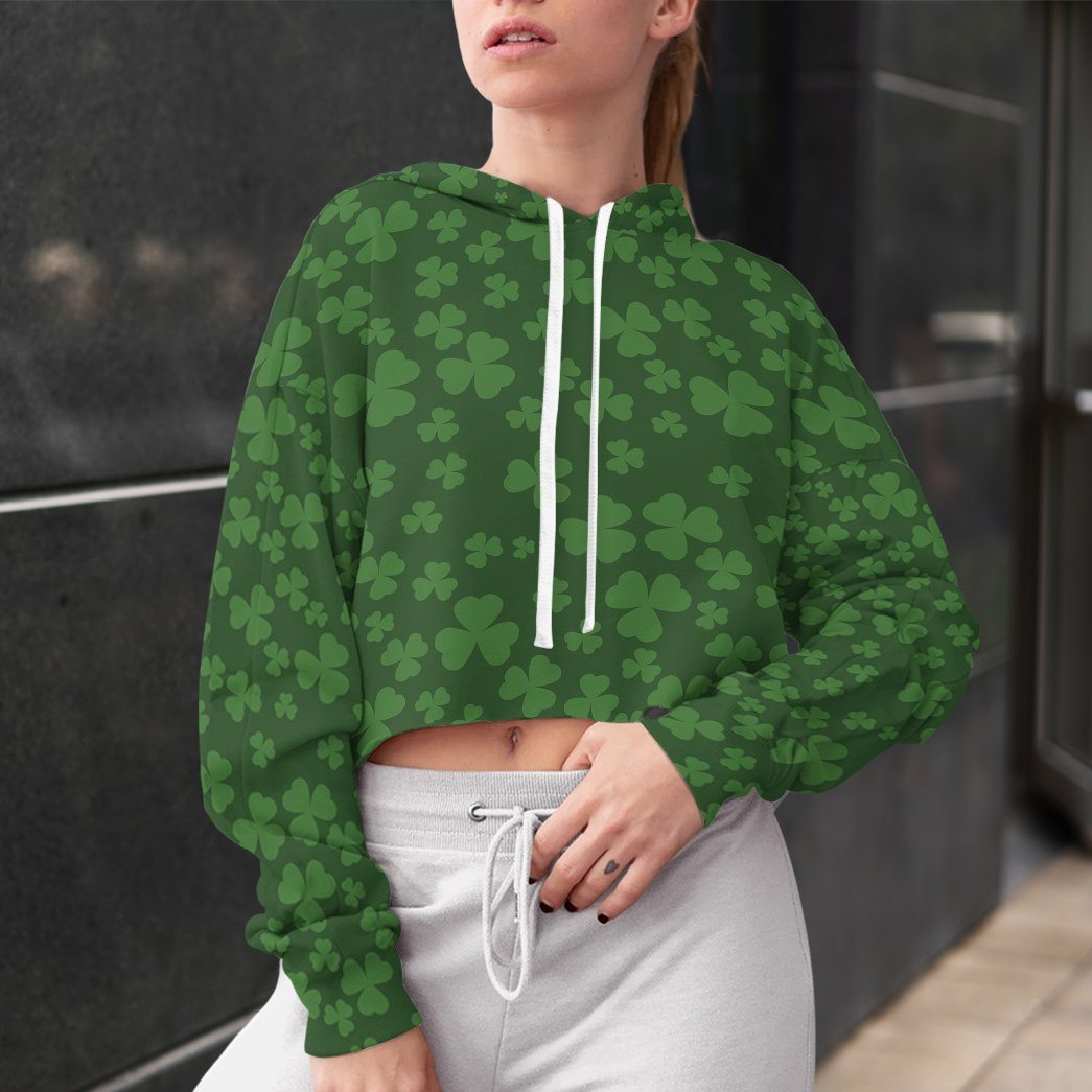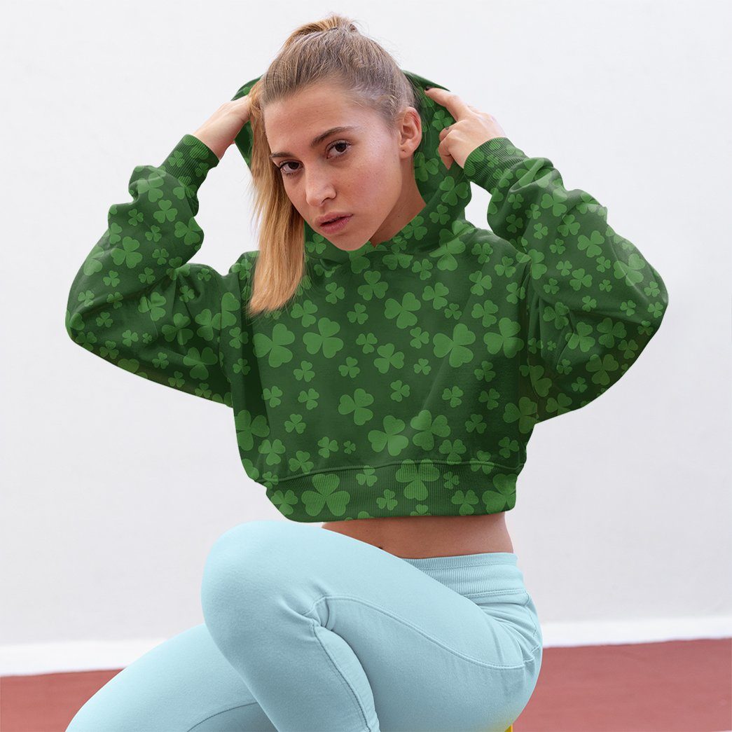 Gearhumans 3D St Patrick Green Shamrock Crop Hoodie