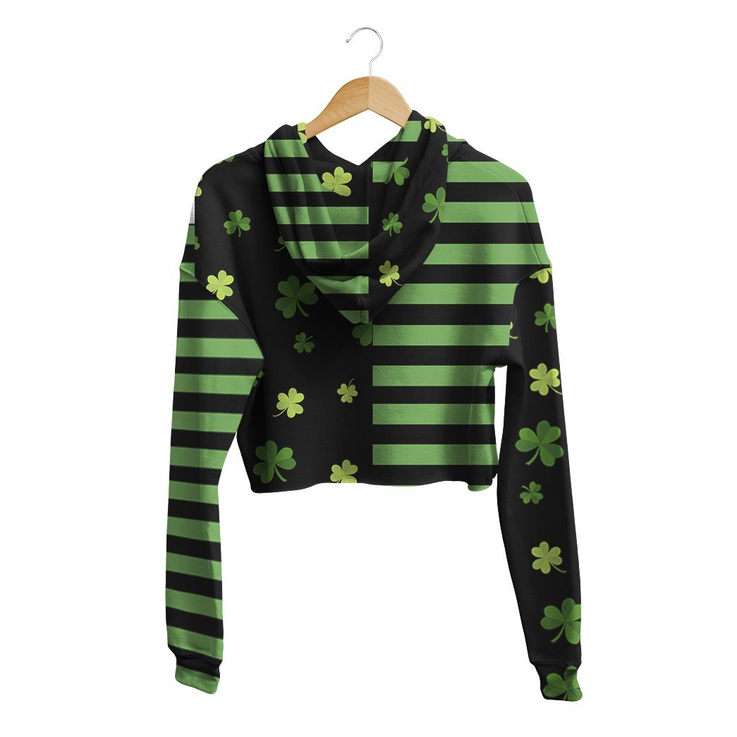 Gearhumans 3D St Patrick Shamrock Pattern Crop Hoodie