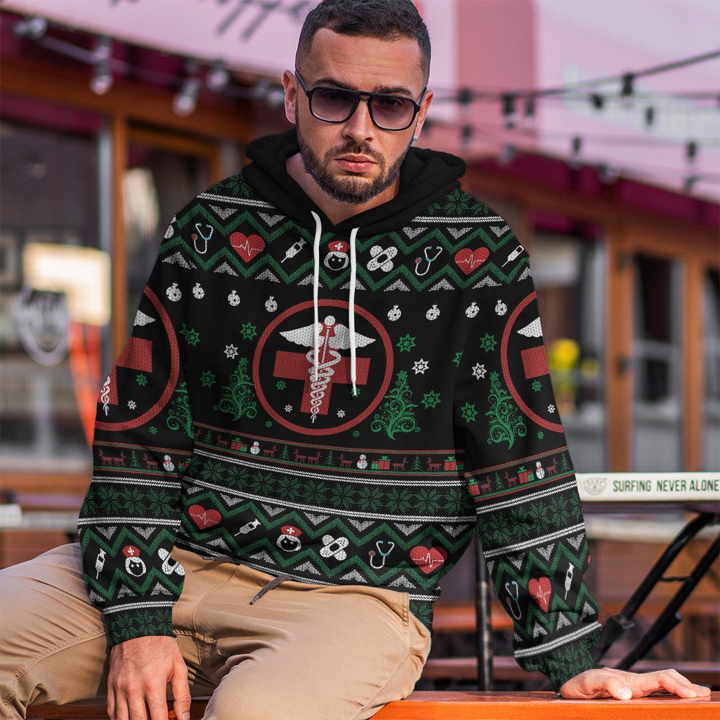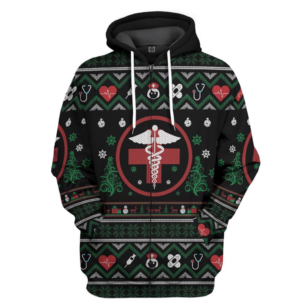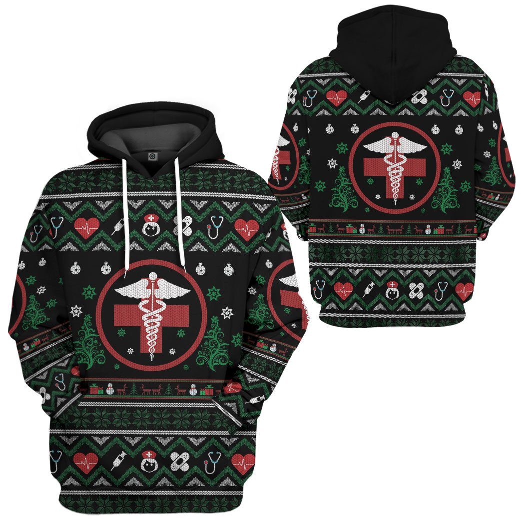 Gearhumans 3D Ugly Nurse Christmas Sweaters Custom Hoodie Apparel