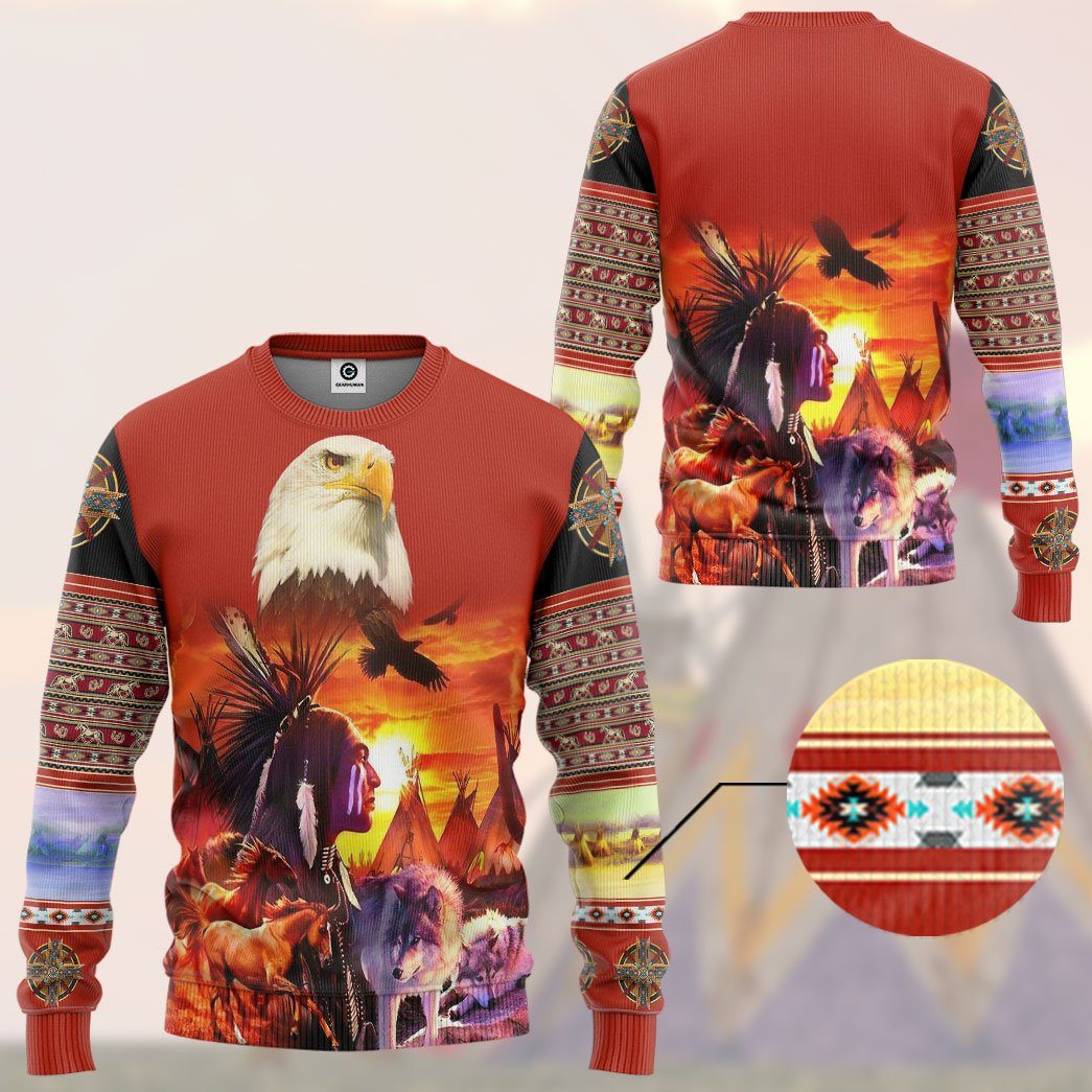 Gearhumans 3D Unique Native America Tshirt Hoodie Apparel