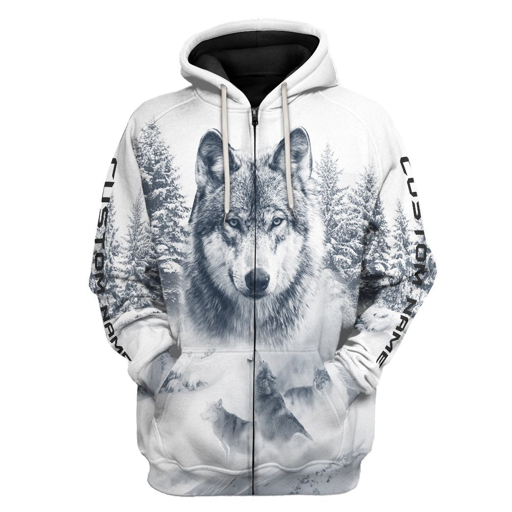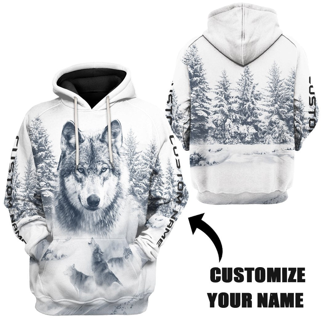 Gearhumans 3D Wolf Snow Custom Name Tshirt Hoodie Apparel