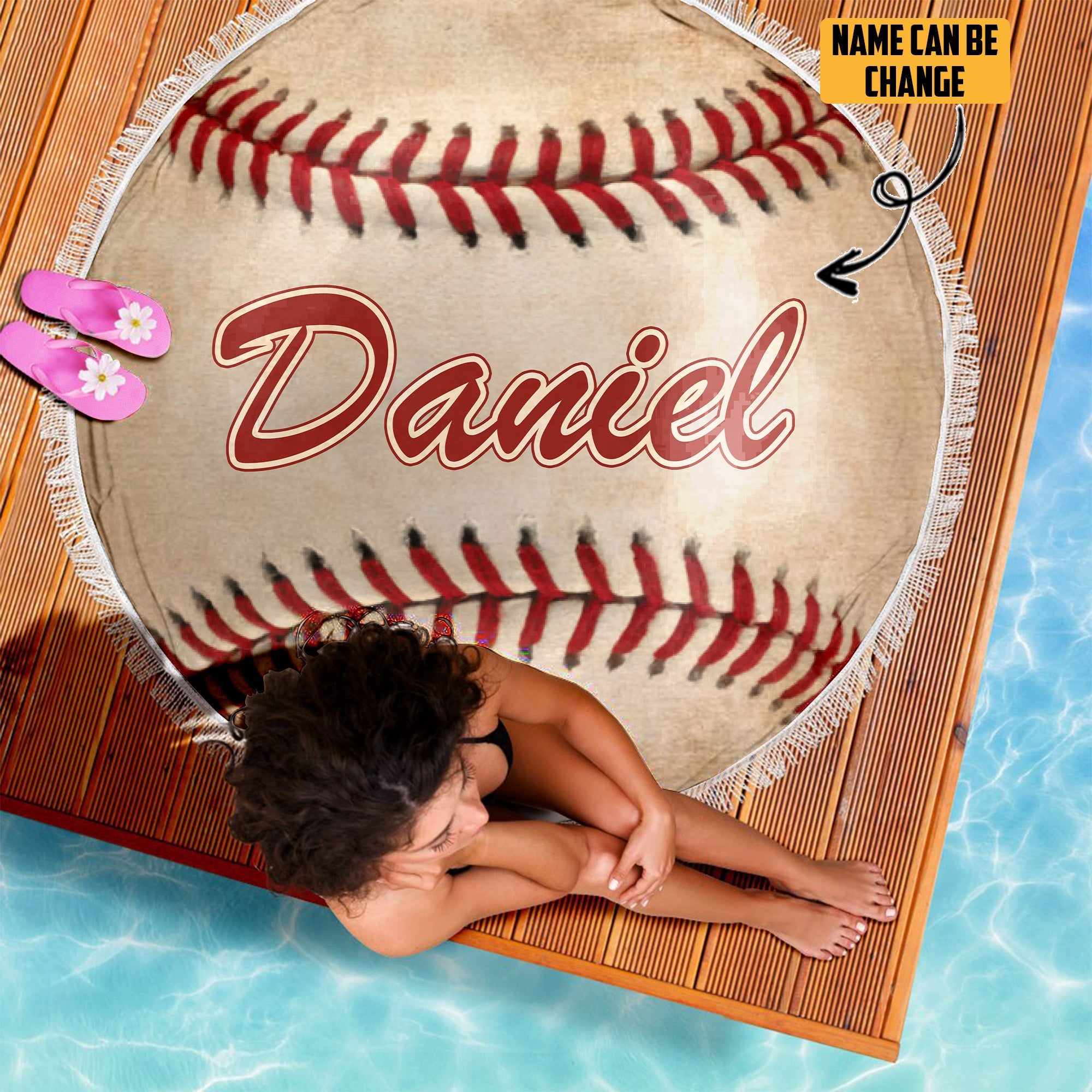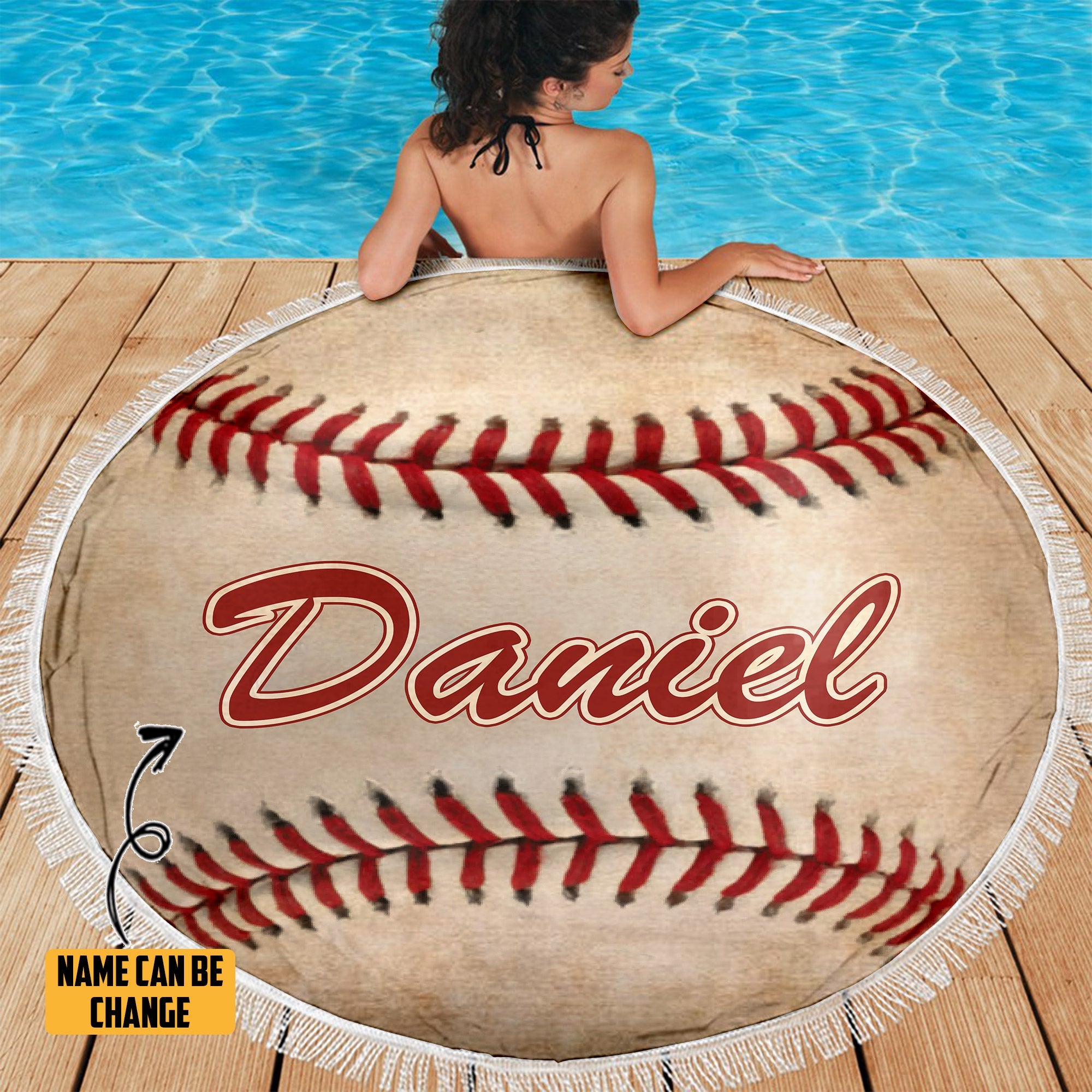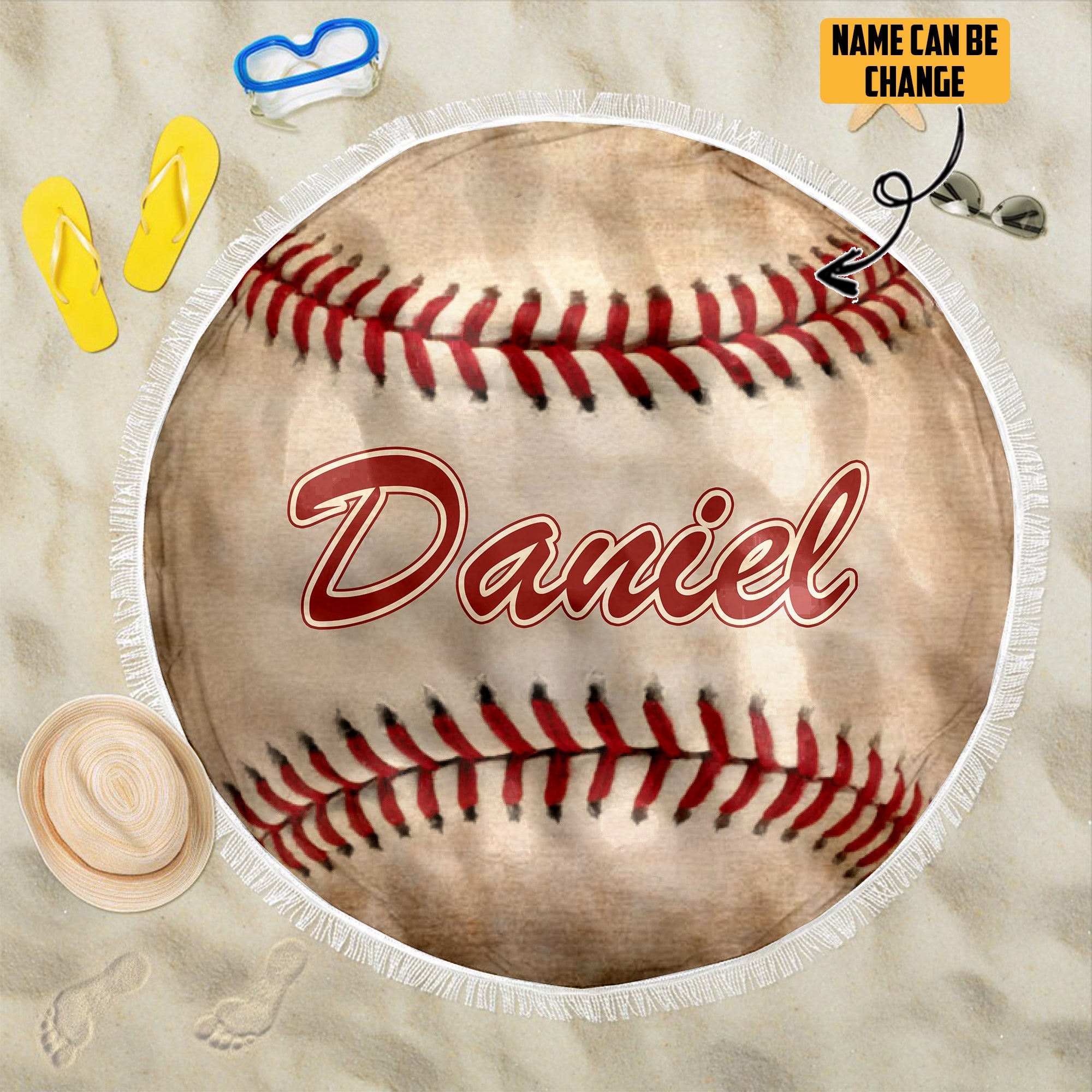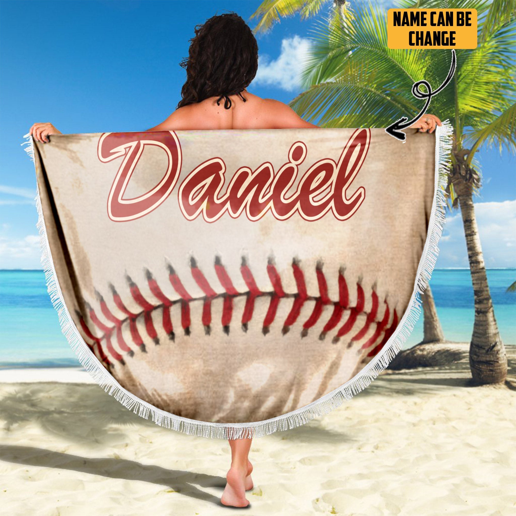 Gearhumans 3D Baseball Custom Name Round Beach Towel