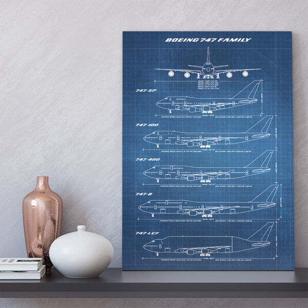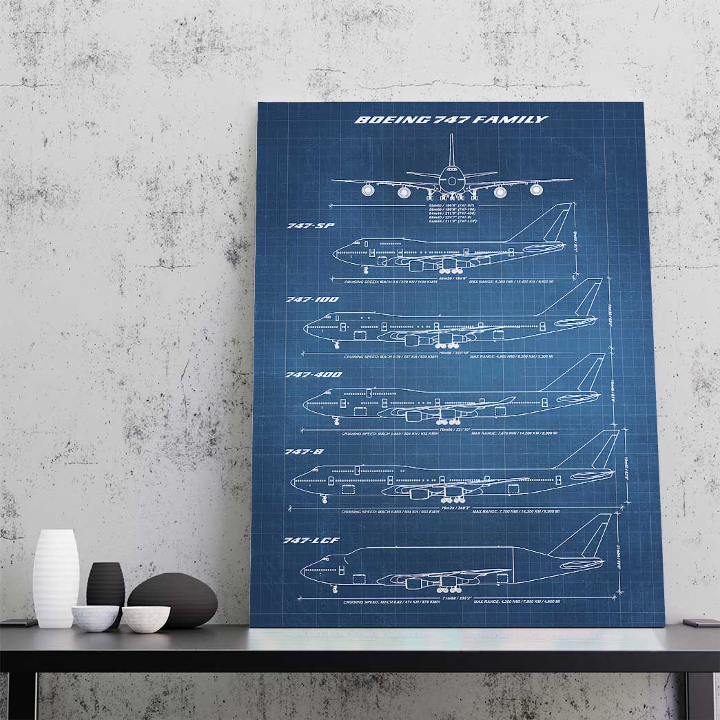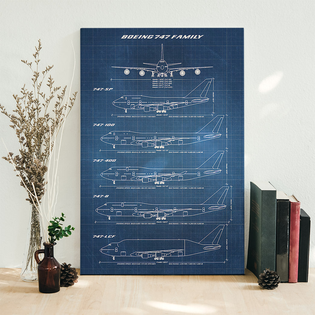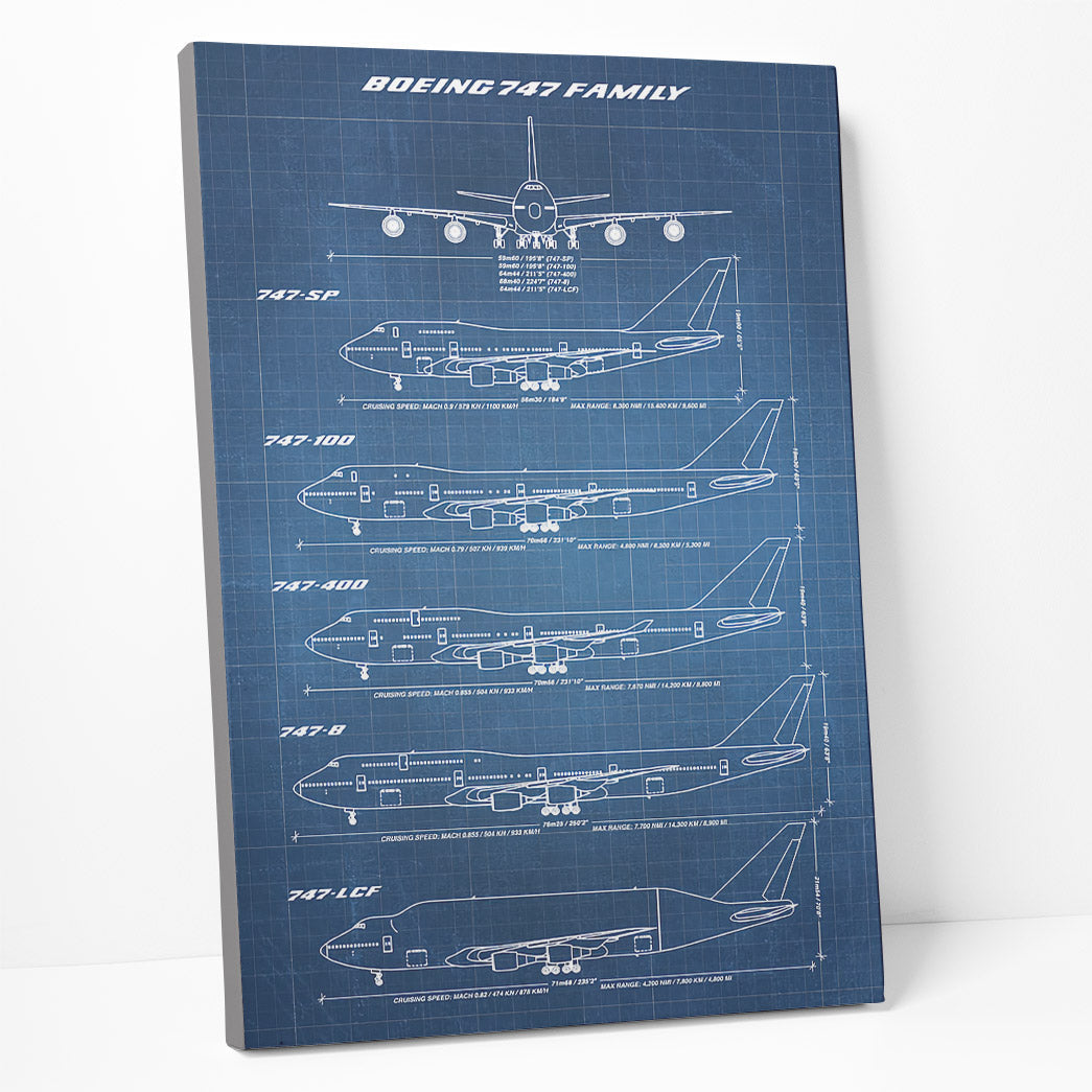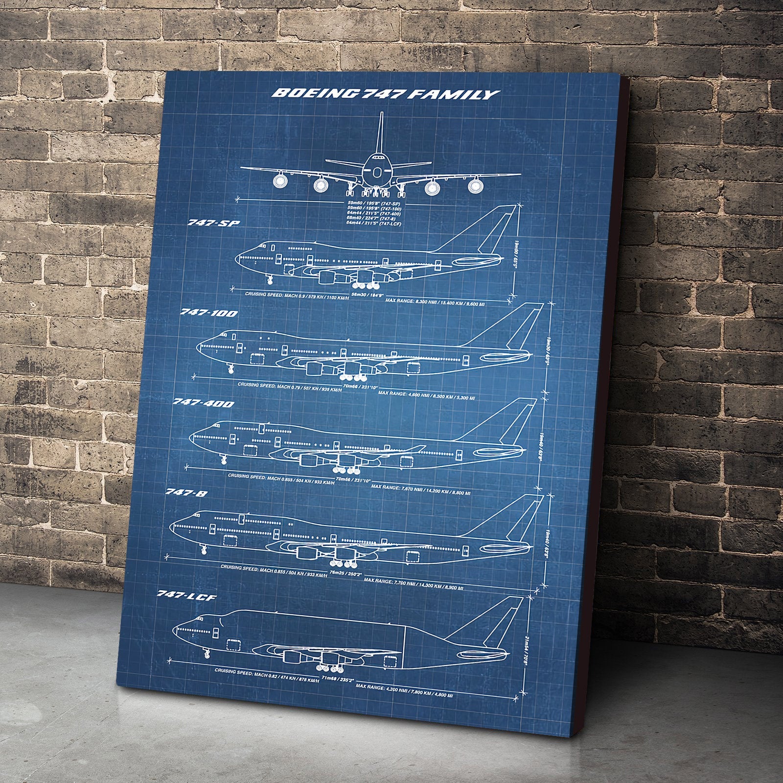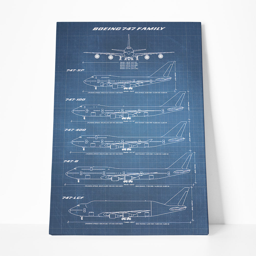 Gearhumans 3D Boeing 747 Family Concept Drawing Custom Canvas