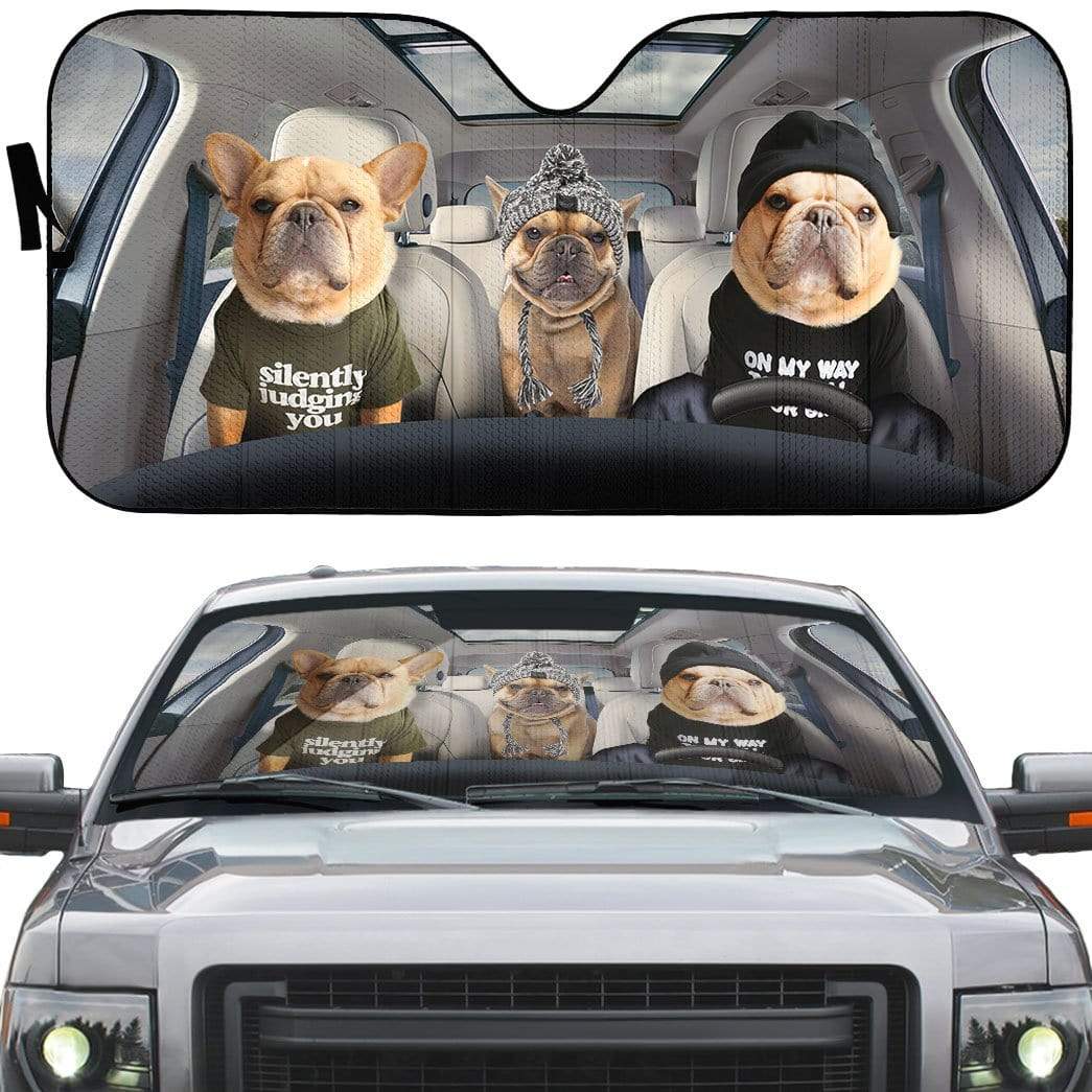 Gearhumans 3D Bulldog Family Custom Car Auto Sunshade