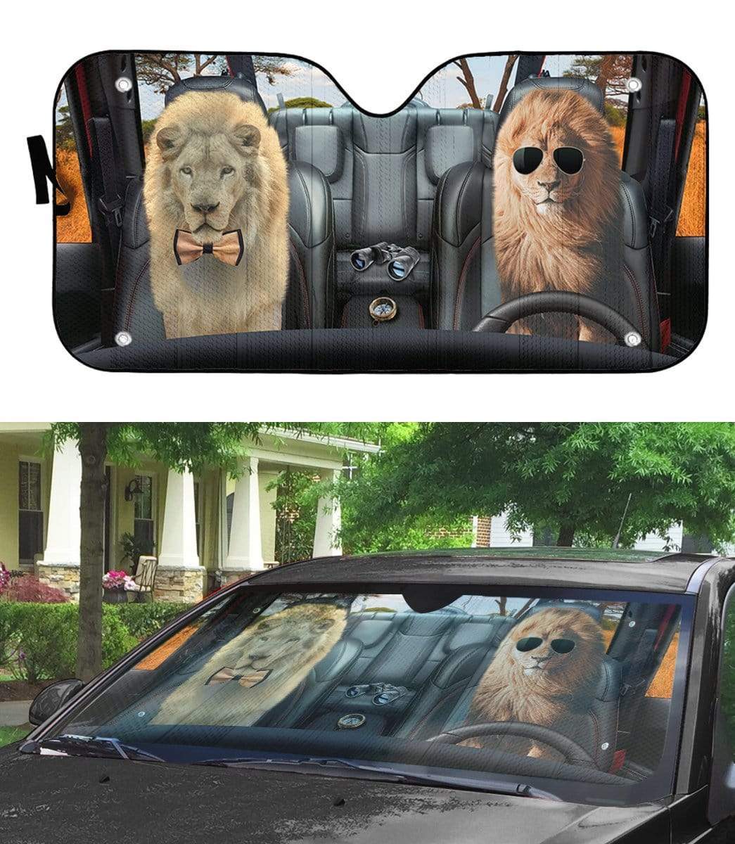 Gearhumans 3D Couple Lion Custom Car Auto Sunshade