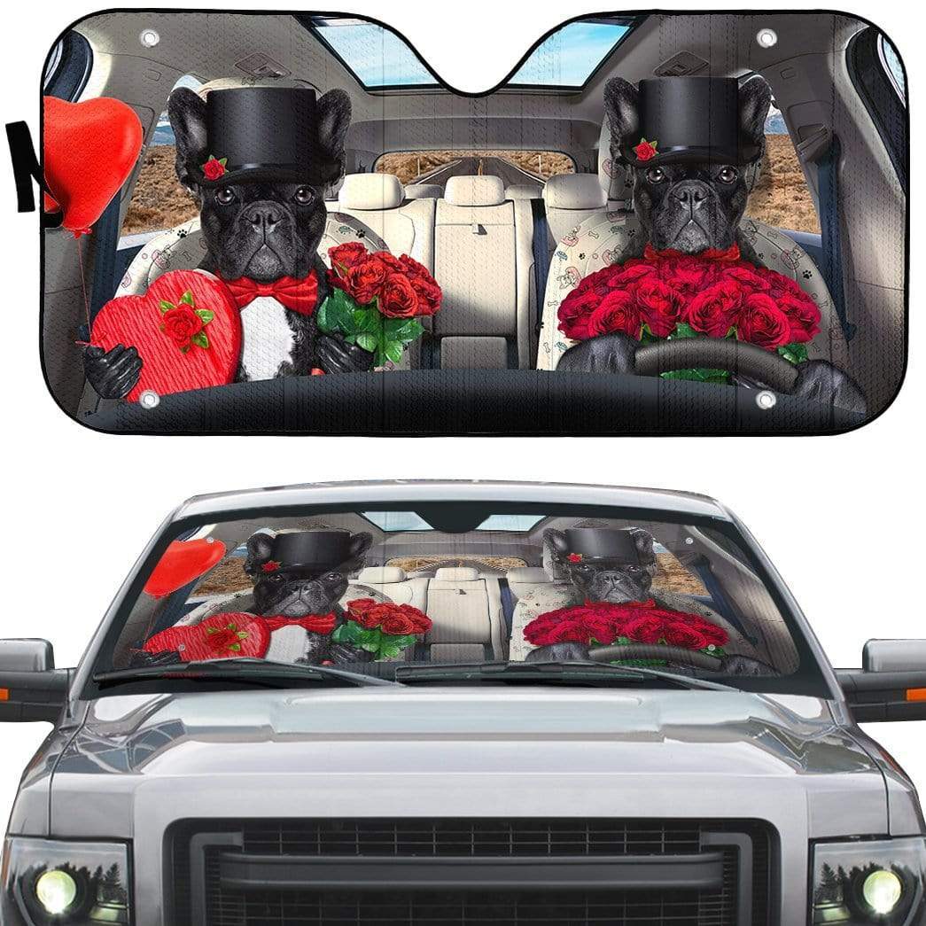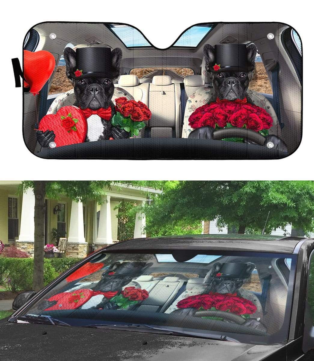 Gearhumans 3D Fall In Love French Bulldog Auto Sunshade