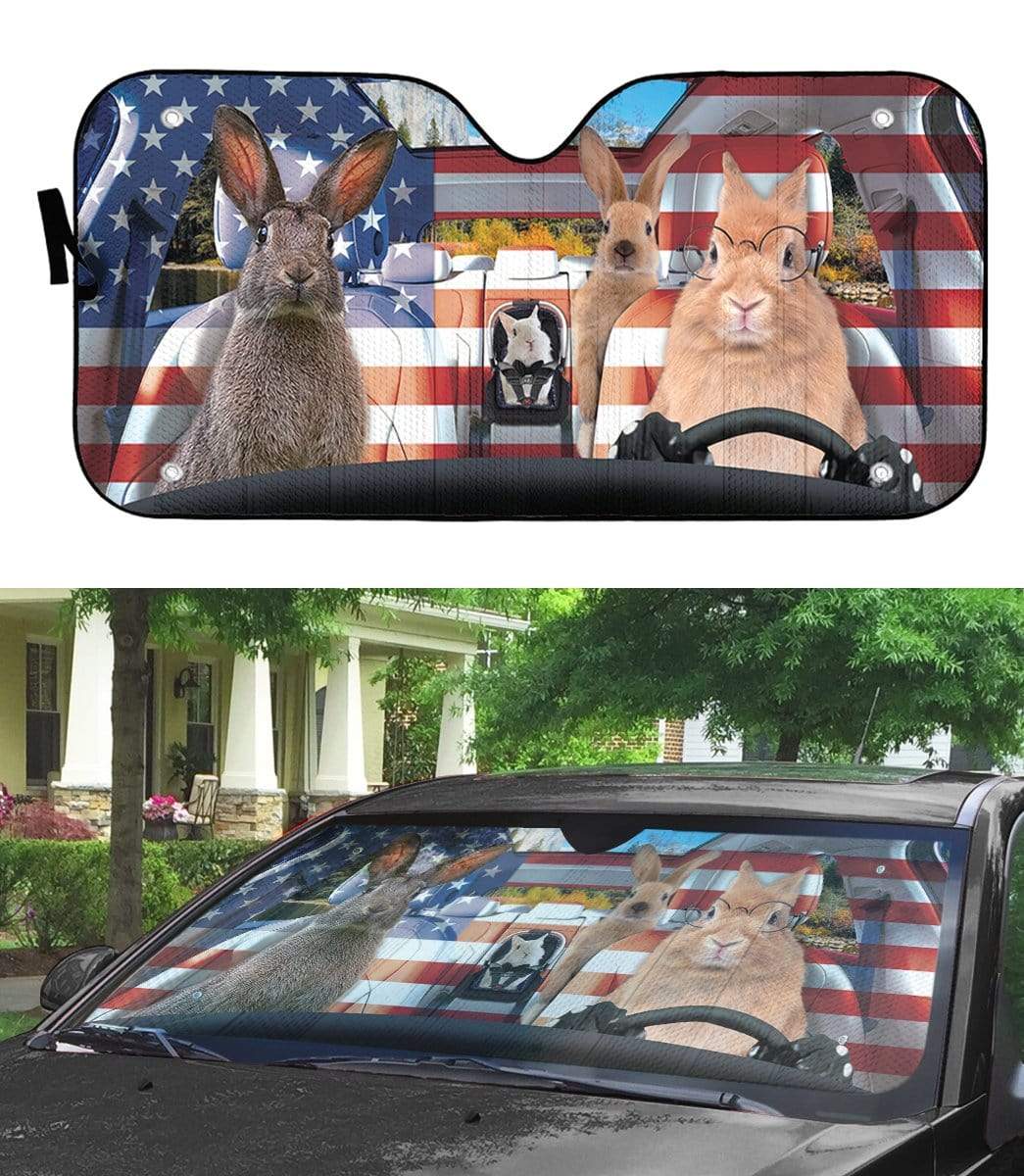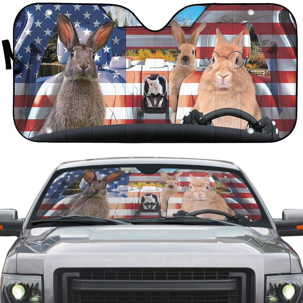 Gearhumans 3D Family Rabits America Custom Car Auto Sunshade