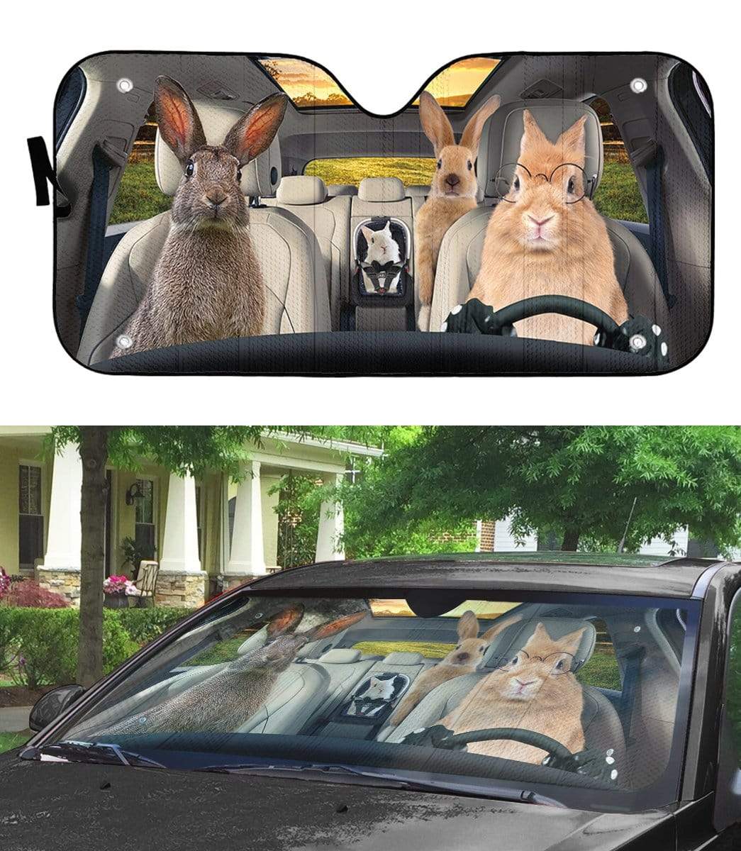 Gearhumans 3D Family Rabits Custom Car Auto Sunshade