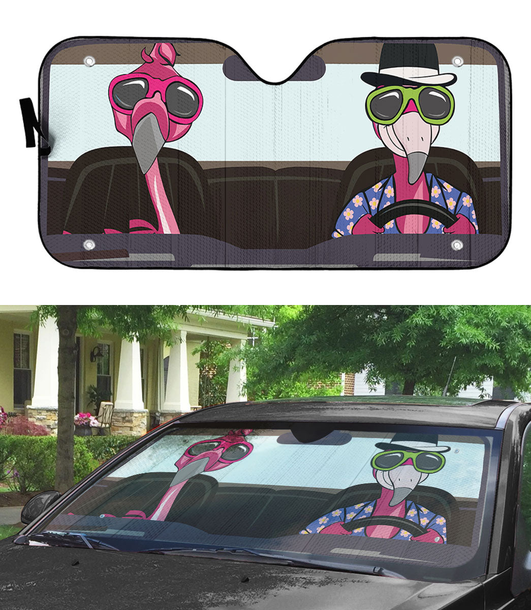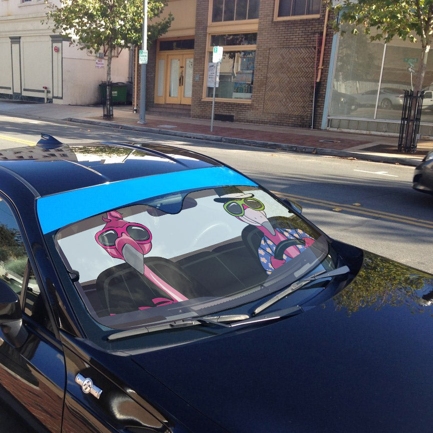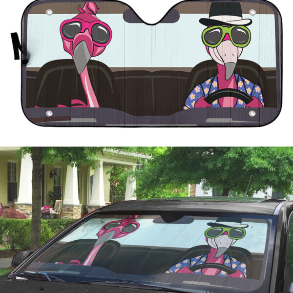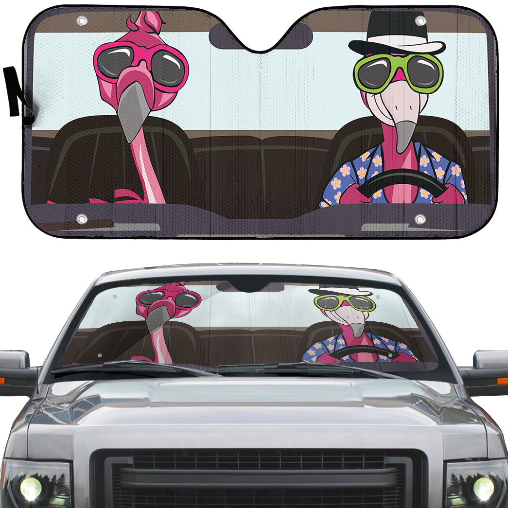 Gearhumans 3D Flamingo Couple Custom Car Auto Sunshade