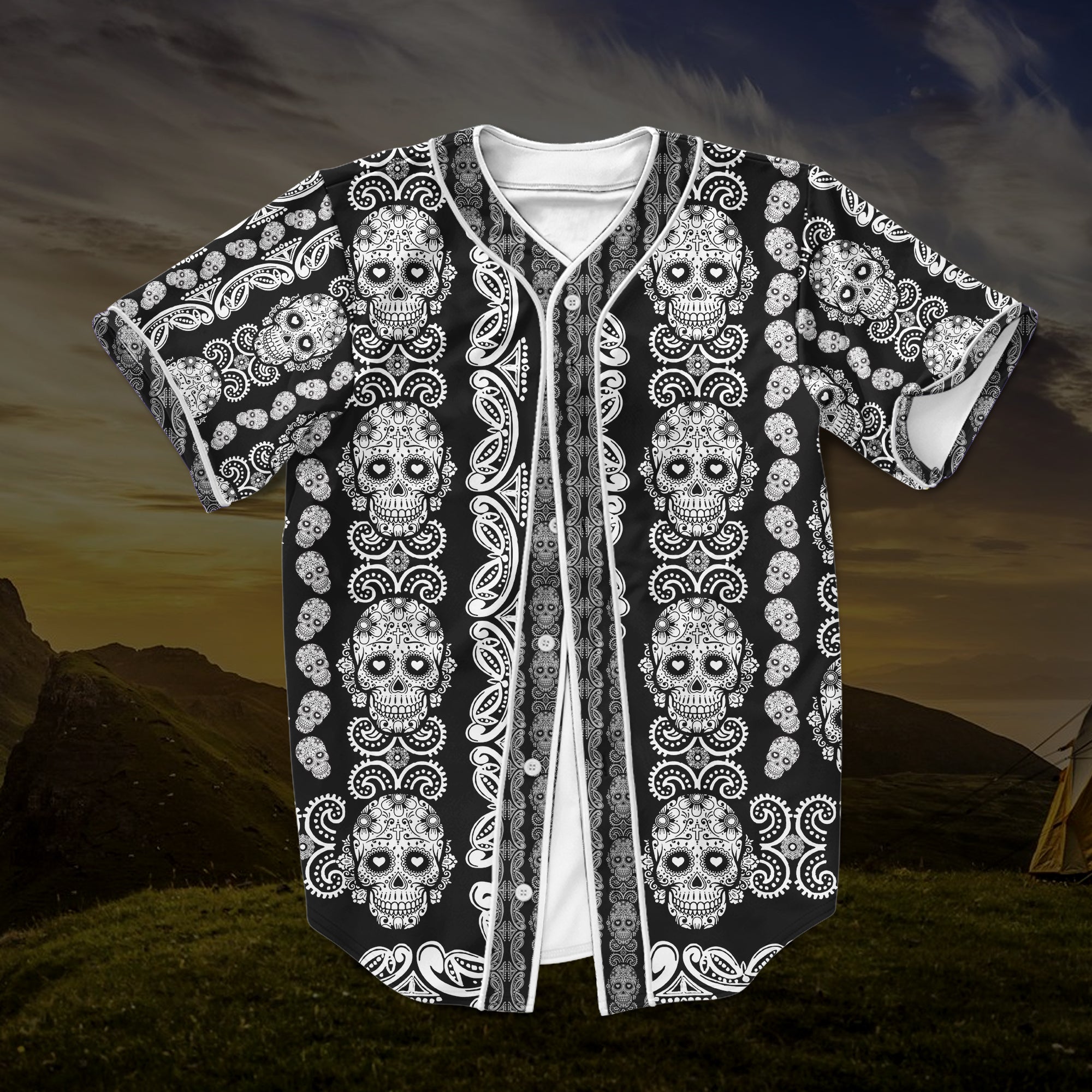 Gearhumans 3D Sugar Skull Pattern Custom Jersey Shirt