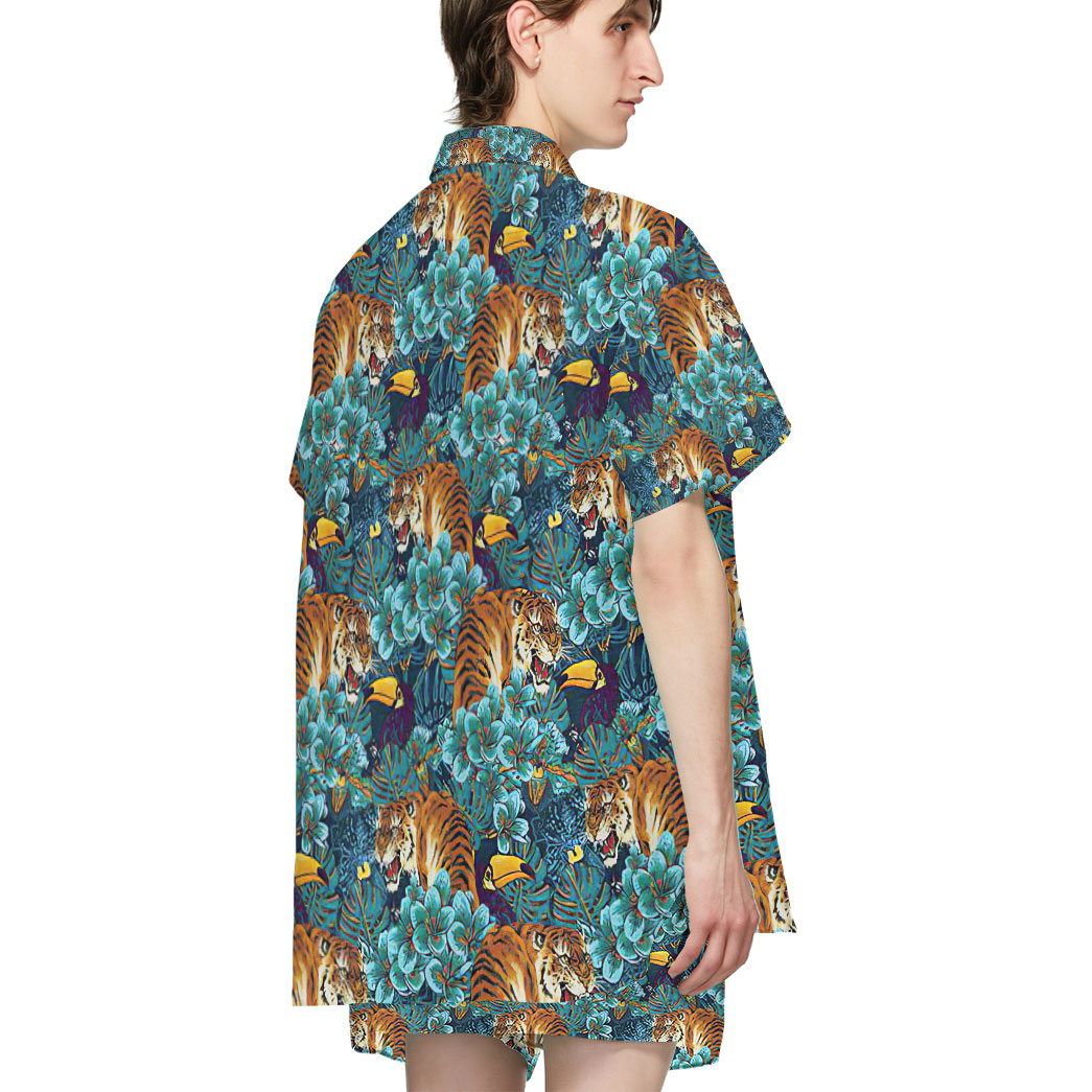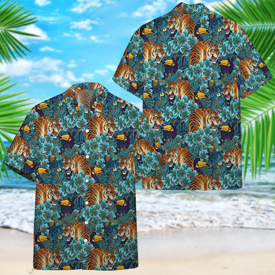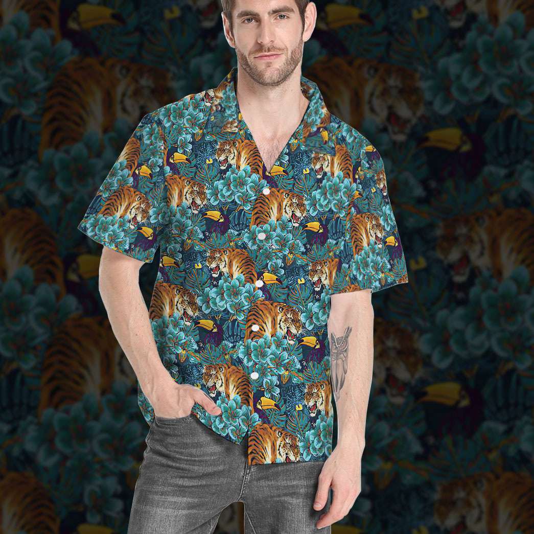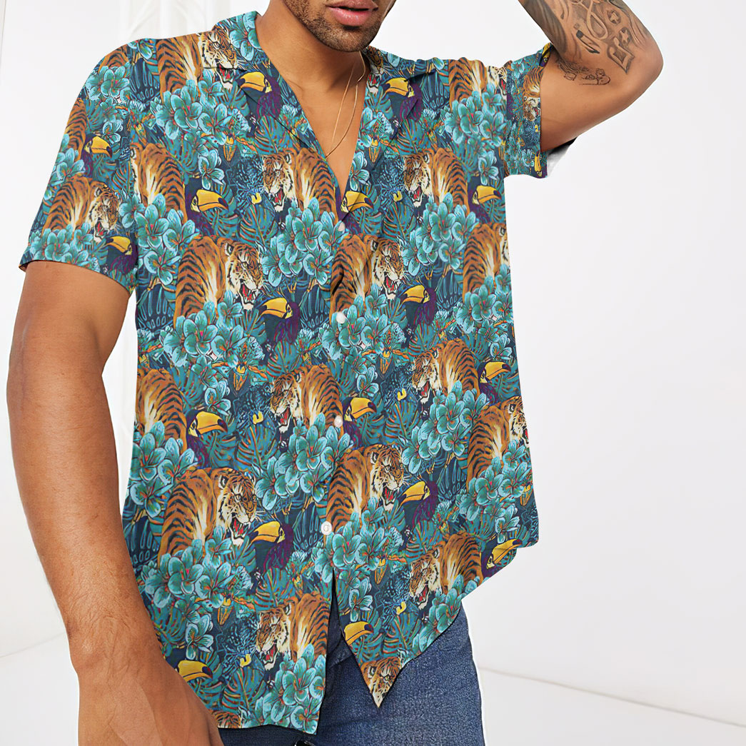 Gearhumans 3D Tiger And Peacock Tropical Custom Hawaii Shirt