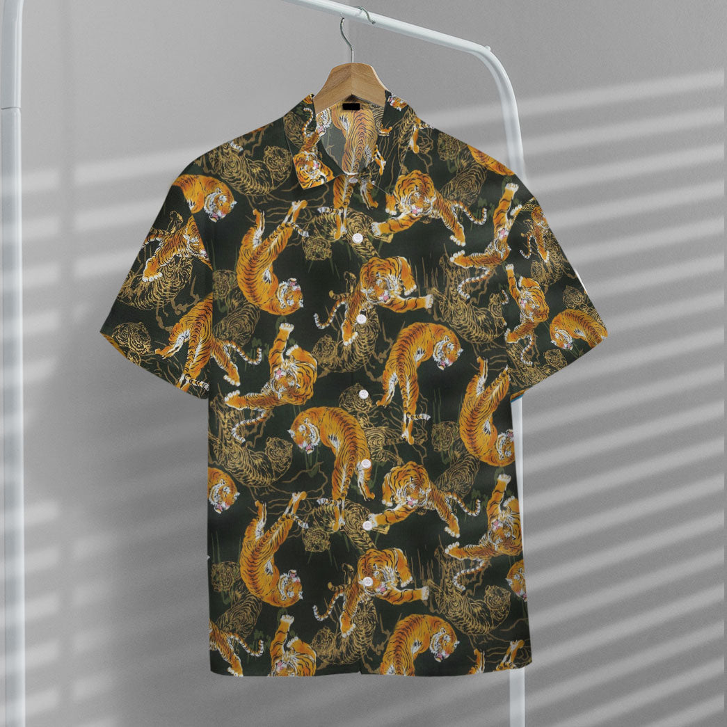 Gearhumans 3D Tiger Fancy Black Custom Hawaii Shirt