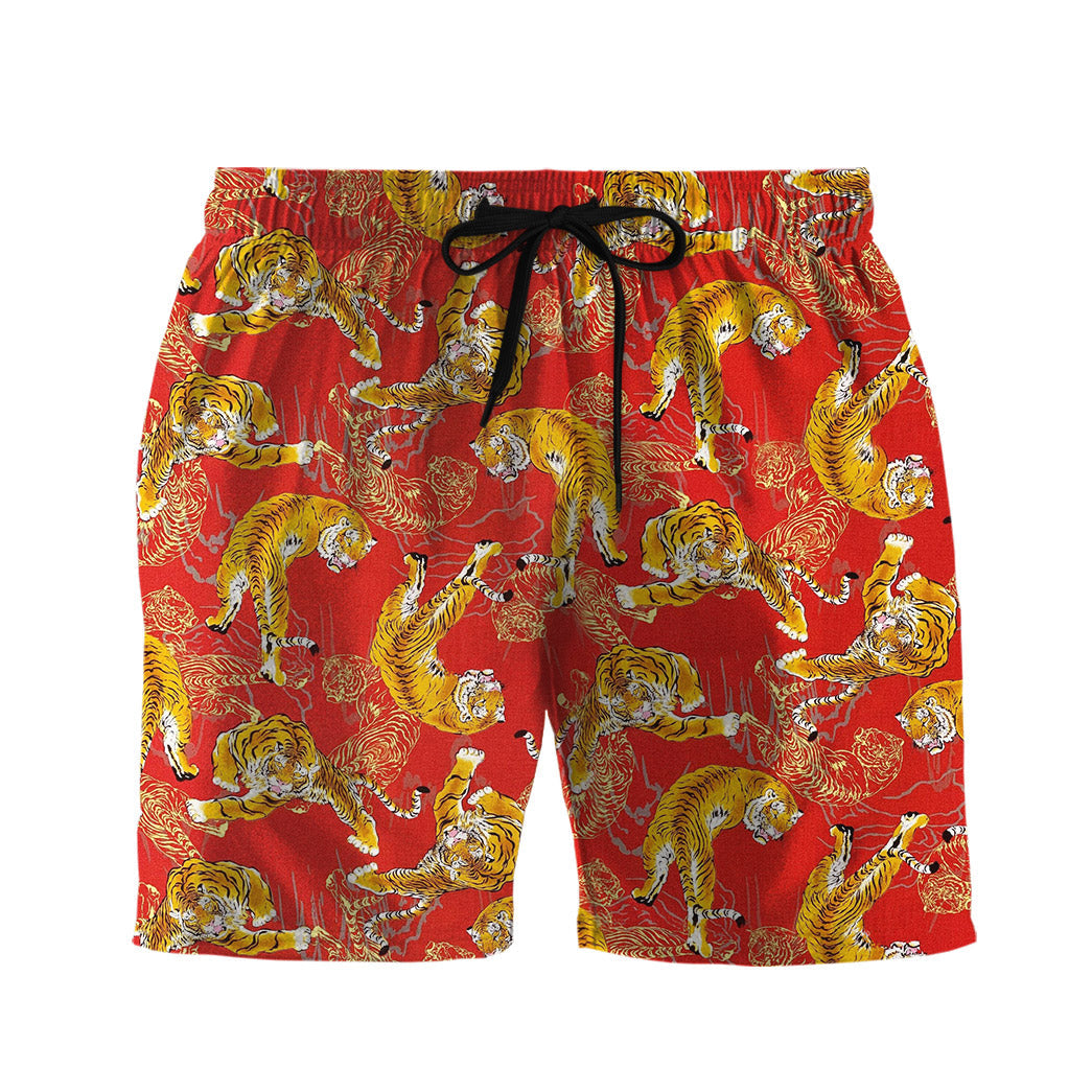 Gearhumans 3D Tiger Fancy Red Custom Men Shorts