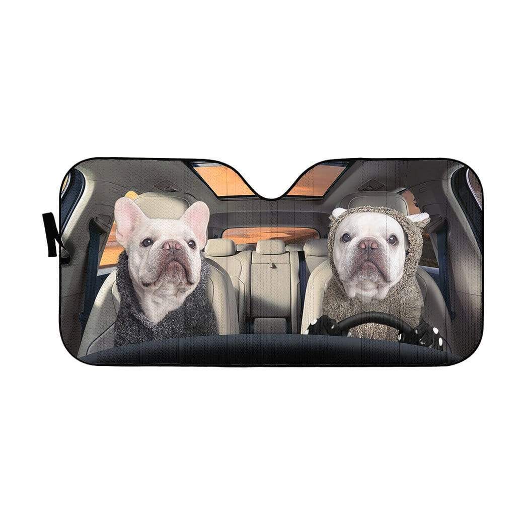Gearhumans 3D White Bulldogs Couple Custom Car Auto Sunshade