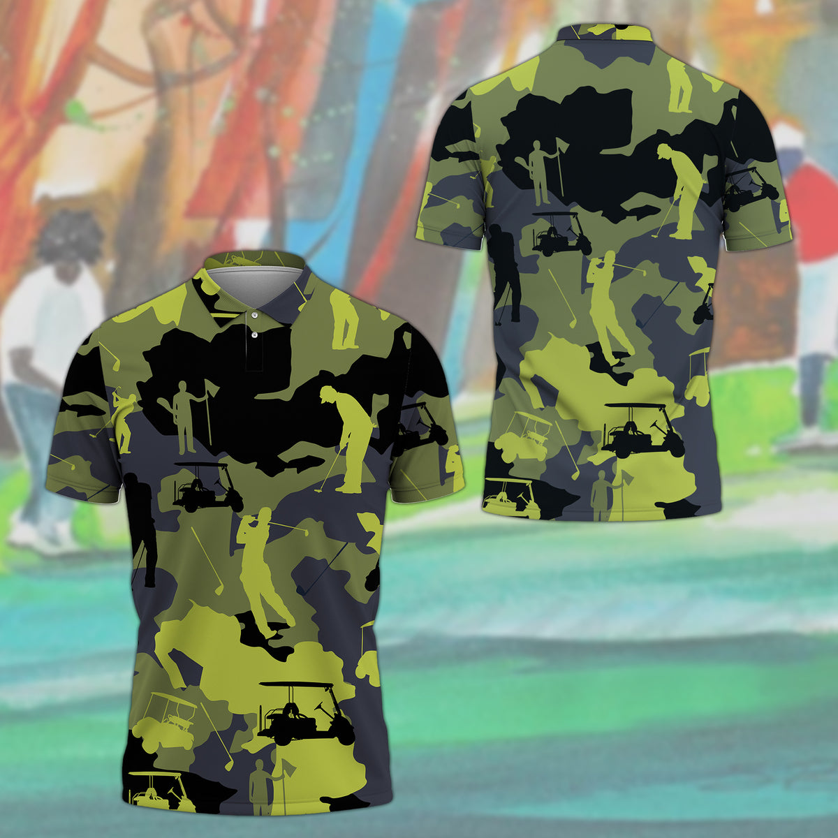 Gearhumans 3D Yellow Camo Golf Custom Polo Shirt