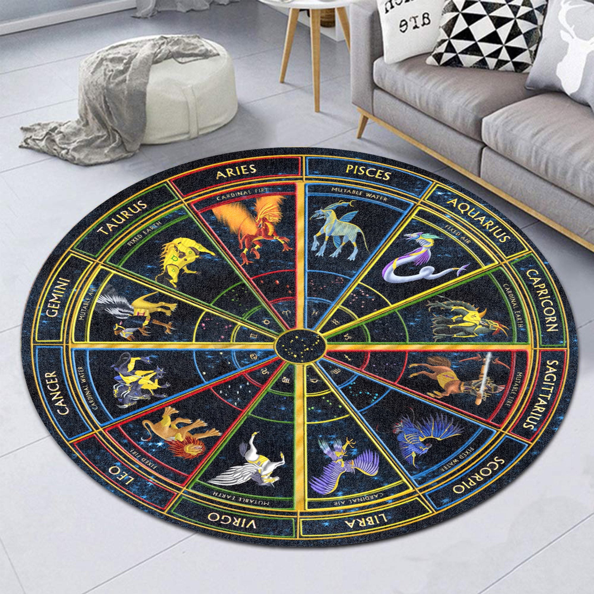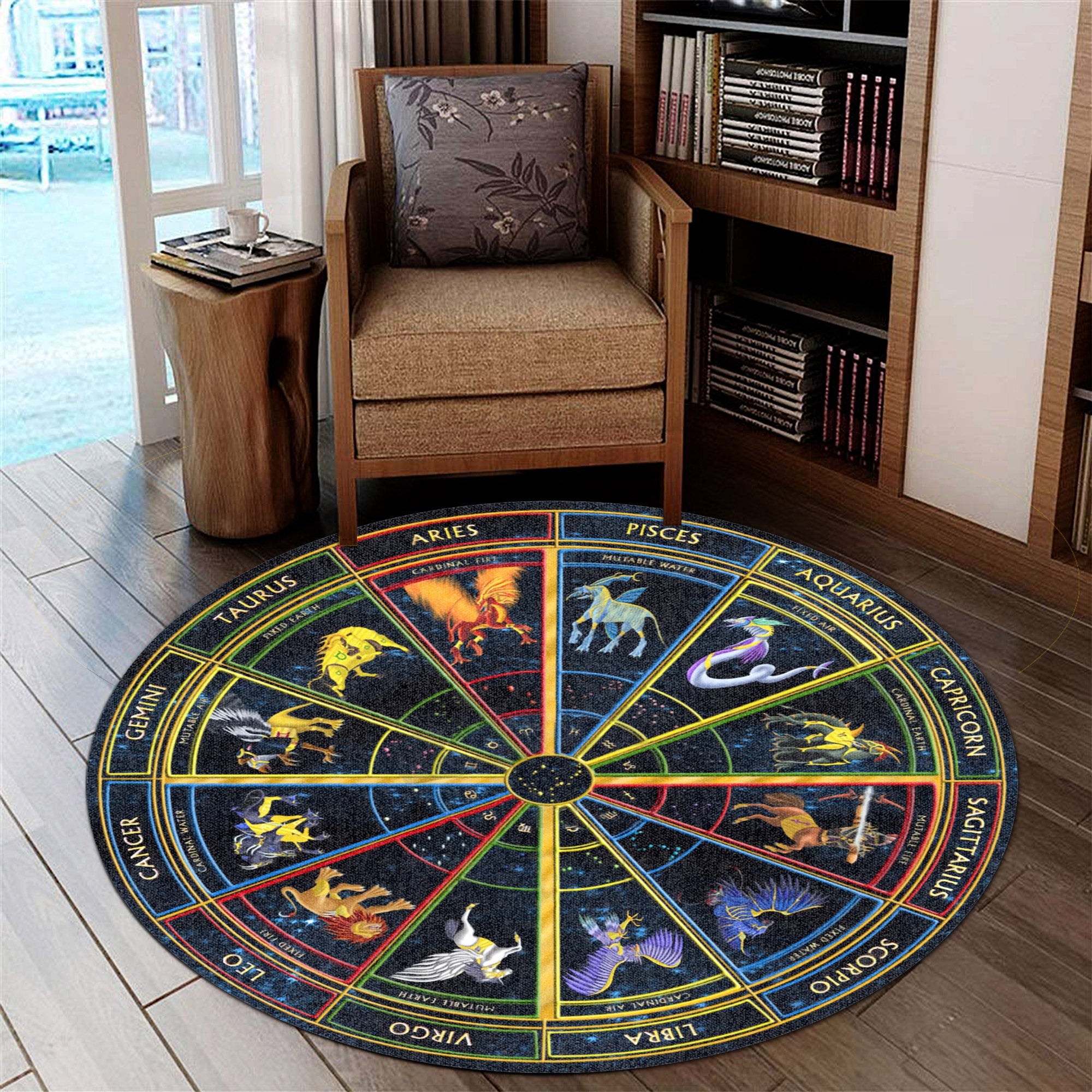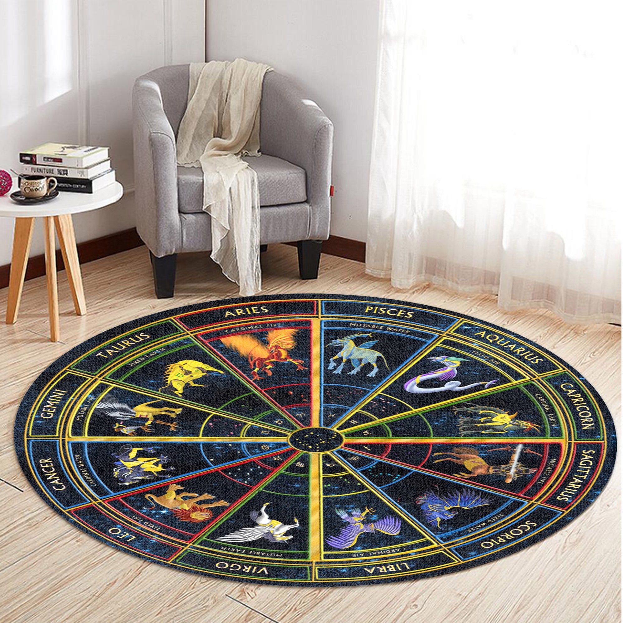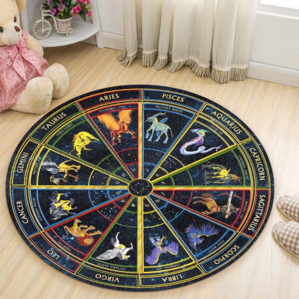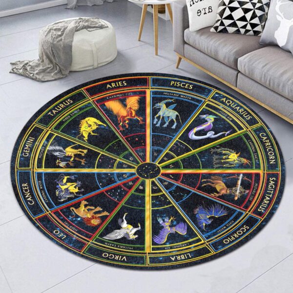 Gearhumans 3D Zodiac Signs Circle Custom Round Rug