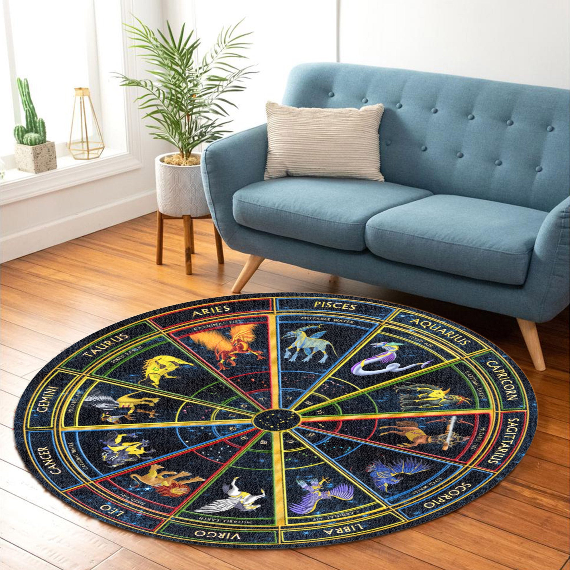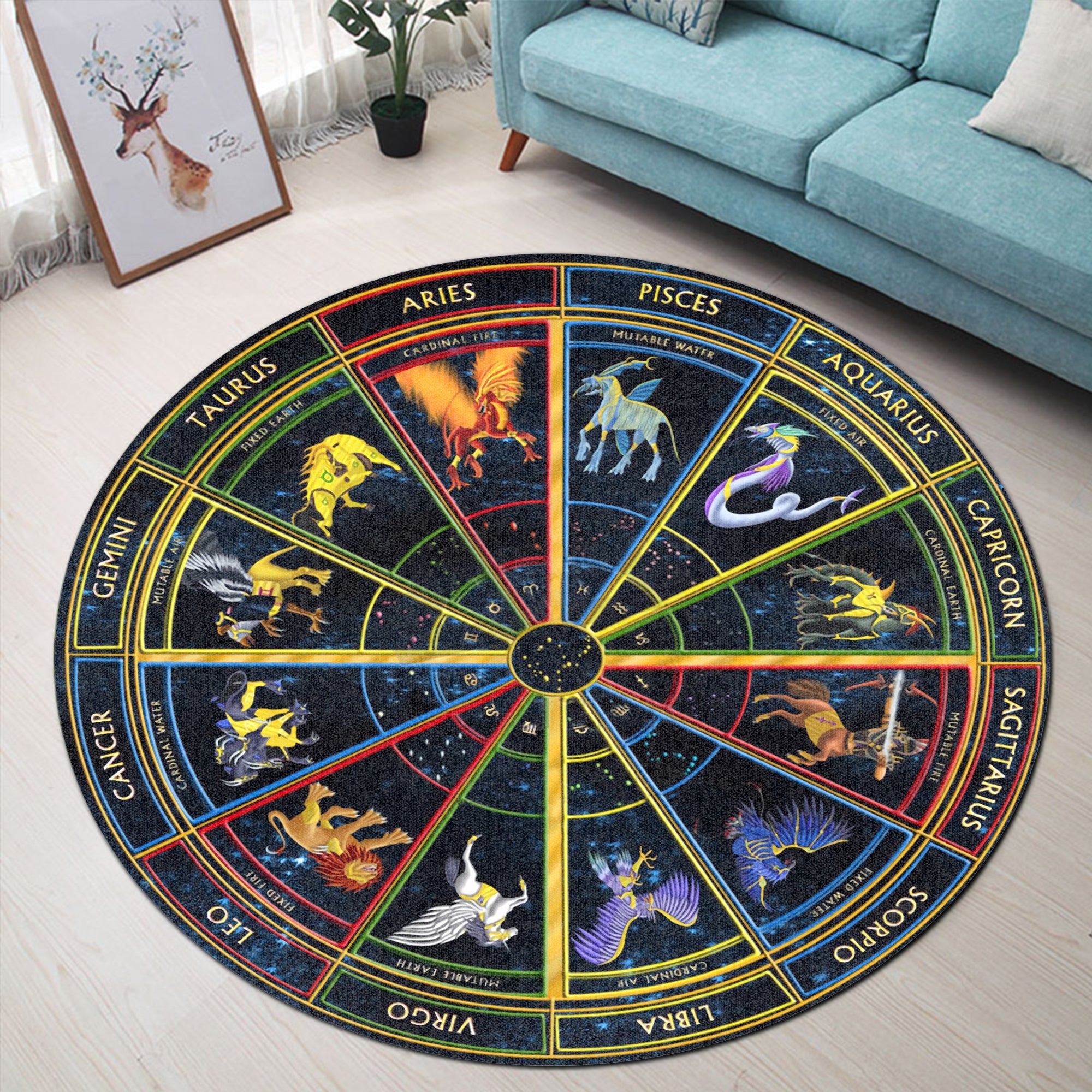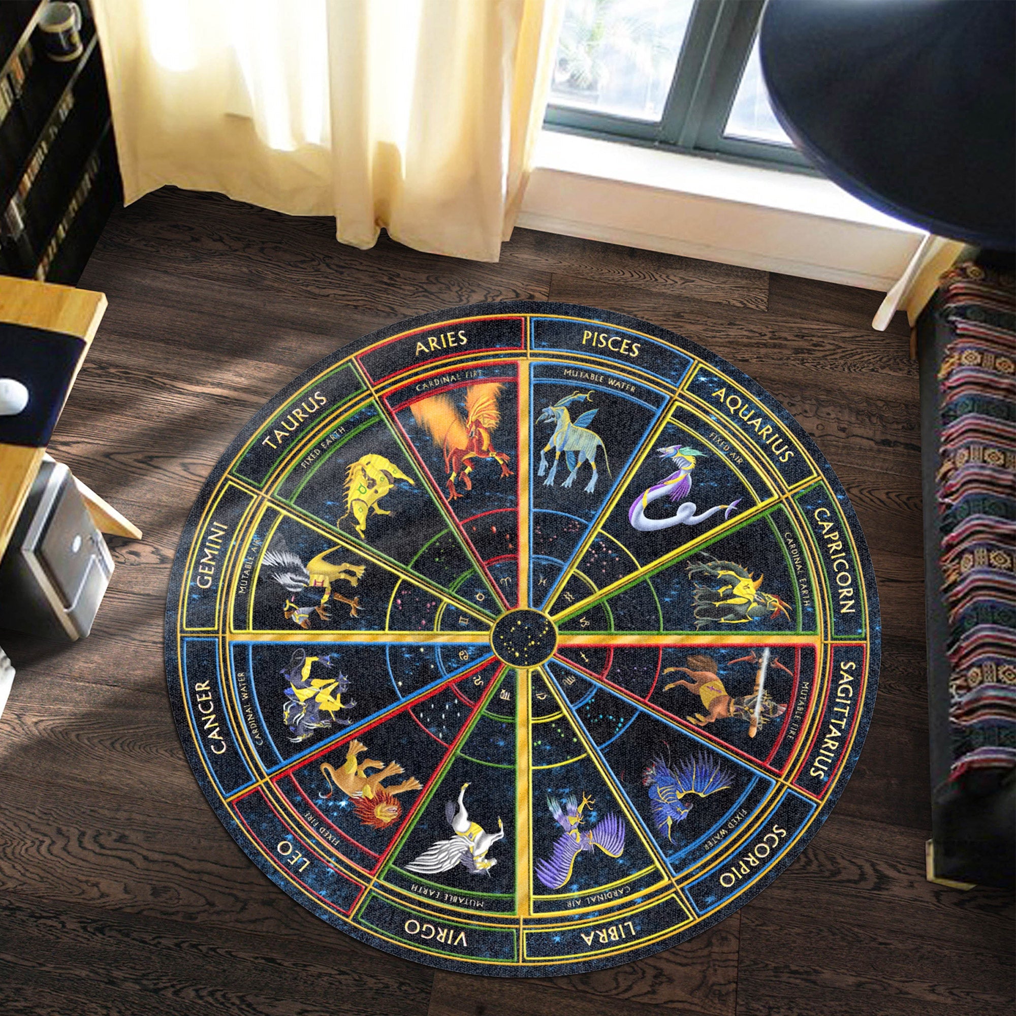 Gearhumans 3D Zodiac Signs Circle Custom Round Rug
