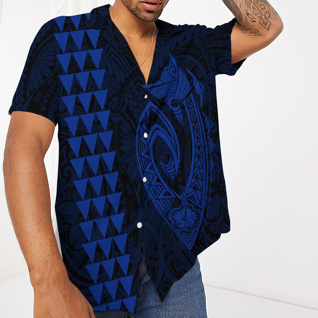 Gearhumans 3D Blue Fish Hook Hawaii Shirt