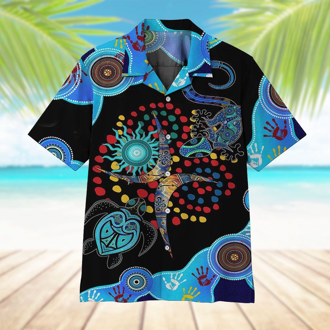 Gearhumans 3D Blue Turtle Lizard Hawaii Shirt