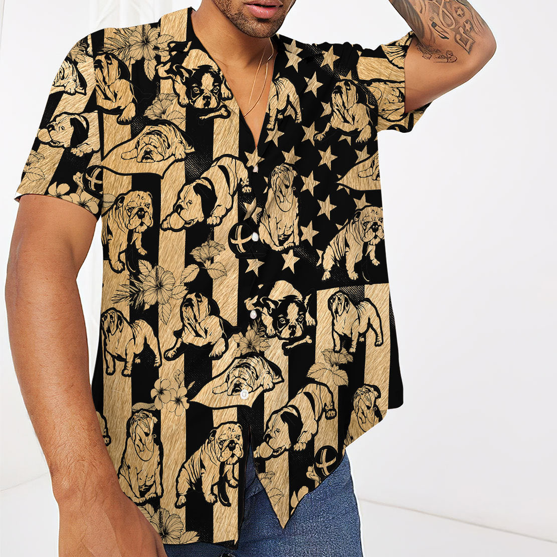 Gearhumans 3D Bulldog American Flag Hawaii Shirt