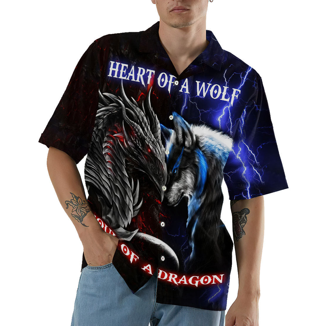 Gearhumans 3D Dragon Heart Of A Wolf, Soul Of A Dragon Hawaii Shirt