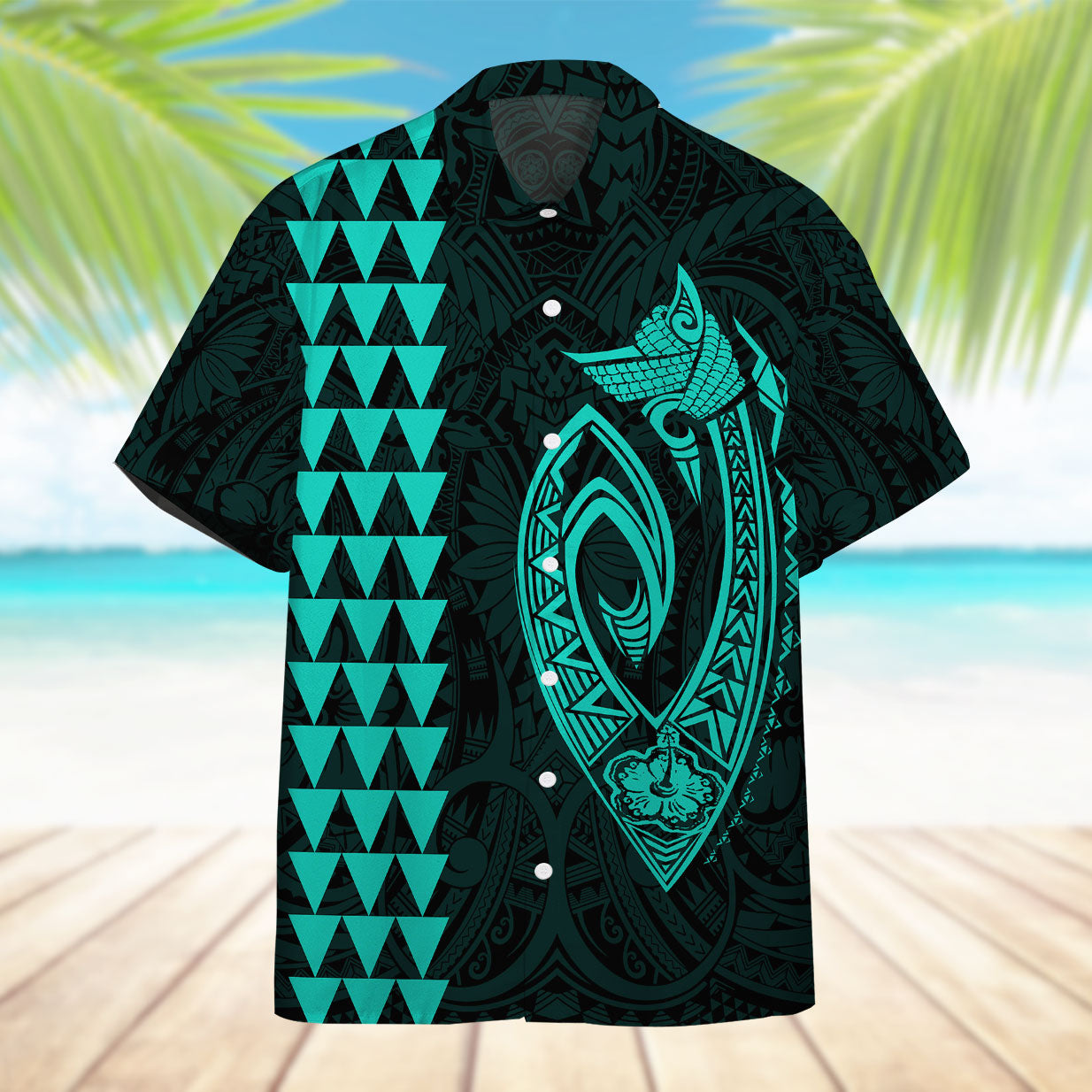 Gearhumans 3D Turquoise Fish Hook Hawaii Shirt