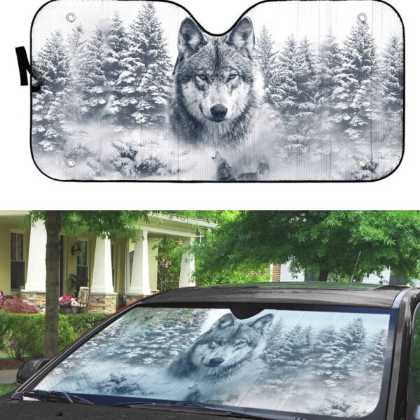Gearhumans 3D Wolf Snow Car Auto Sunshade