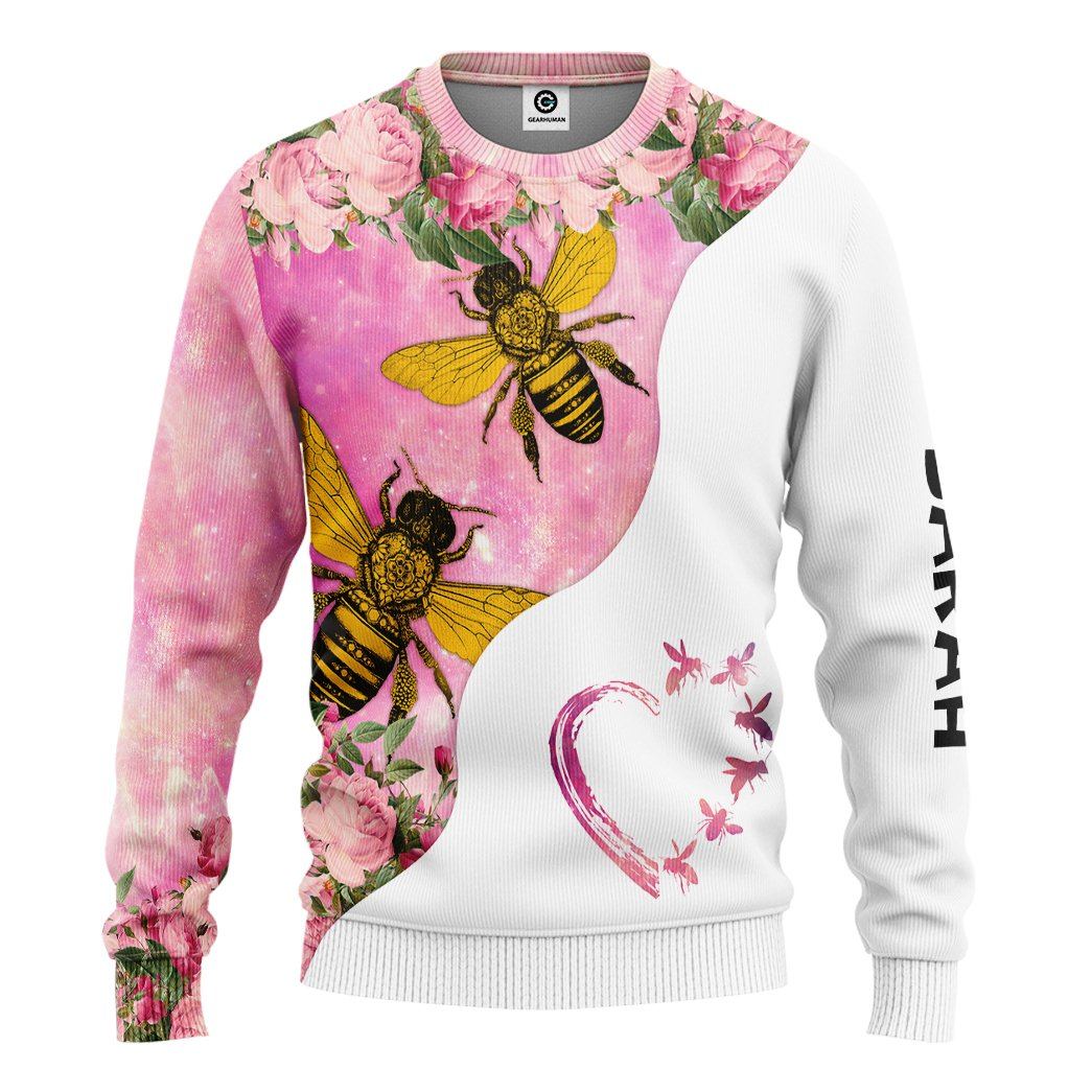 Gearhumans 3D Bee Love Pink Heart Custom Name Tshirt Hoodie Apparel